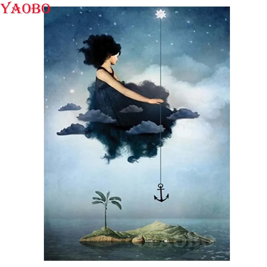 5D круглая Алмазная вышивка сделай сам, женщина, сидящая на облаке, полная вышивка крестиком, алмазная живопись, мозаика, Декор для дома, скандинавский стиль