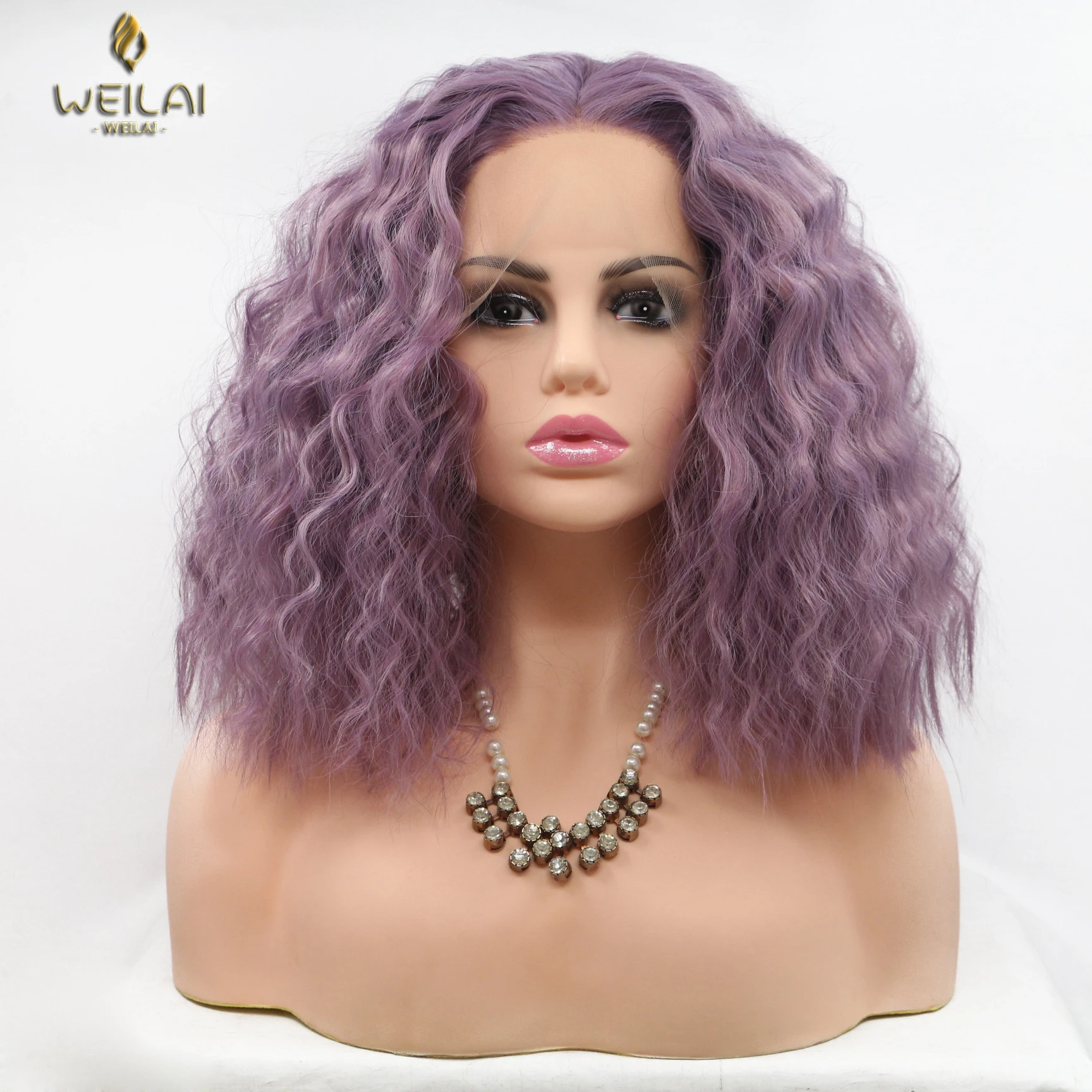 Парик WEILAI на сетке с короткой волной, используется для черных женщин и афроамериканских синтетических фиолетовых париков, парики для ролевых игр