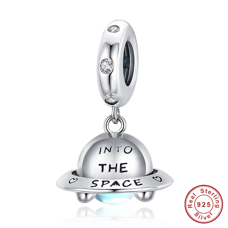 Подходят для браслетов или браслетов сделай сам, Космический космический корабль, очаровательные самолеты, голубые бусины земли, 100% 925 пробы, серебряные подвески, ювелирные изделия