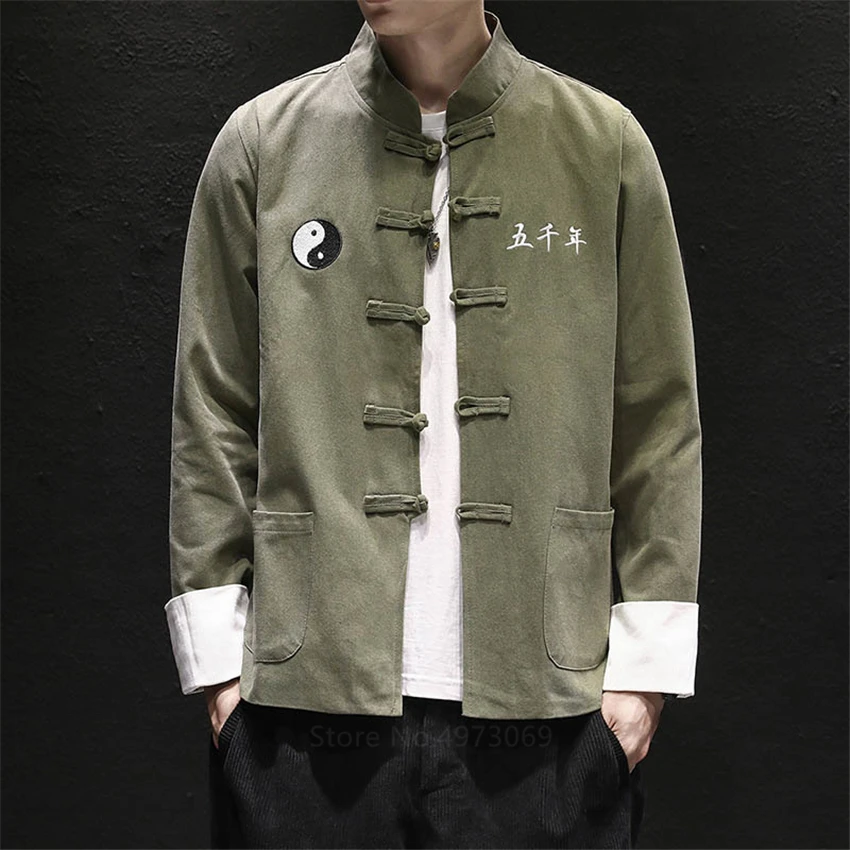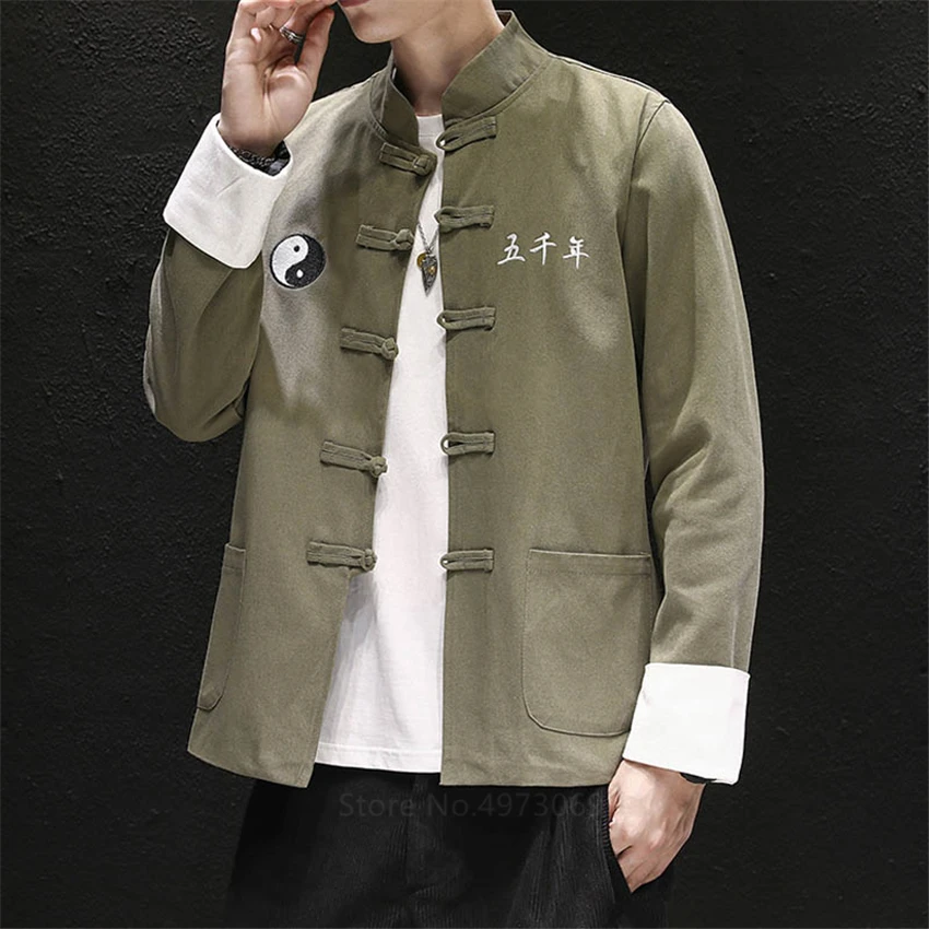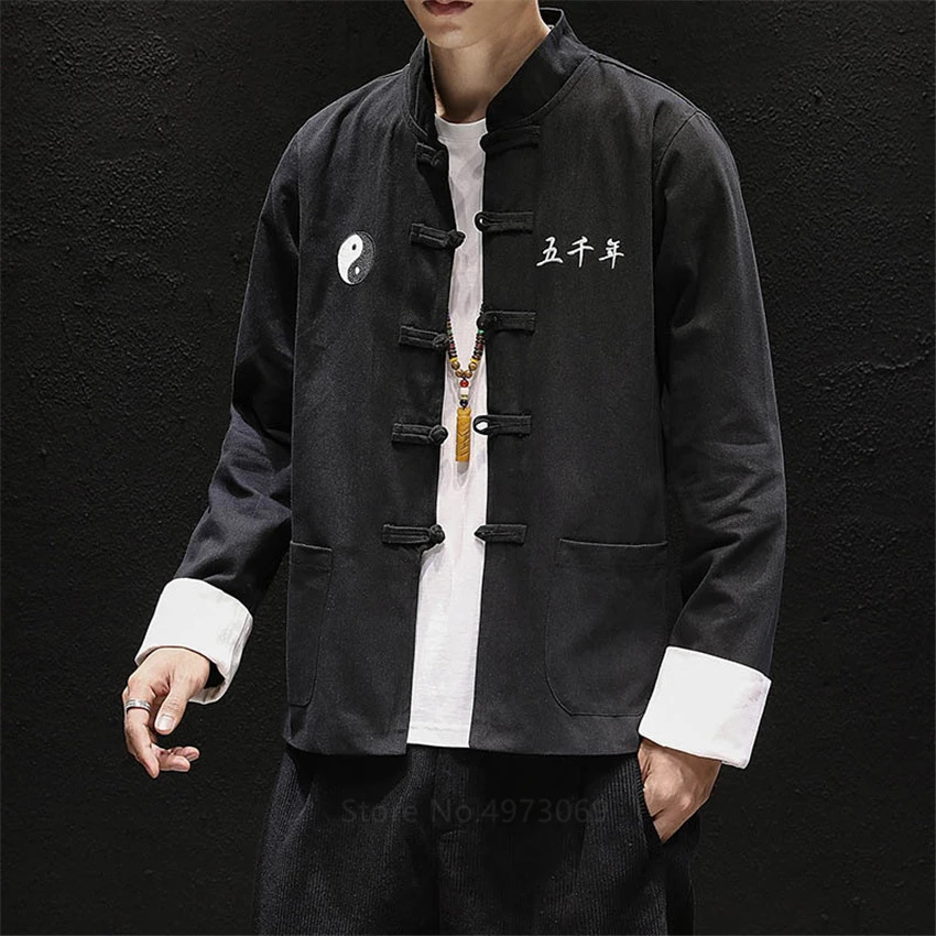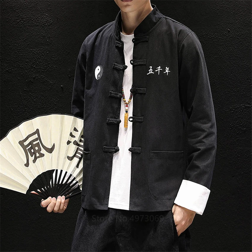 Мужская одежда 2022, топ в китайском традиционном стиле, однотонная Ретро форма Тай Чи, модная Осенняя рубашка ханьфу, кунг-фу Тан