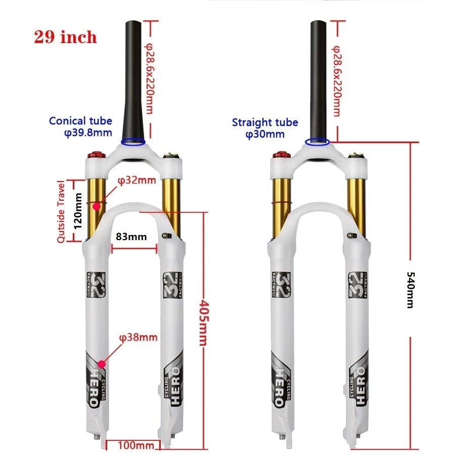 Товары установлены на моем велосипеде после 2 часов замены оригинальных вилок пружинного типа-отделка была очень хорошей. Эти вилки достаточно и поглощают много ударов. Очень доволен моим выбором.