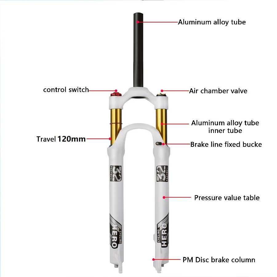 Вилка для подвески велосипеда, 100-120 мм, из белого магниевого сплава, 1750 г, 26, 27,5, 29