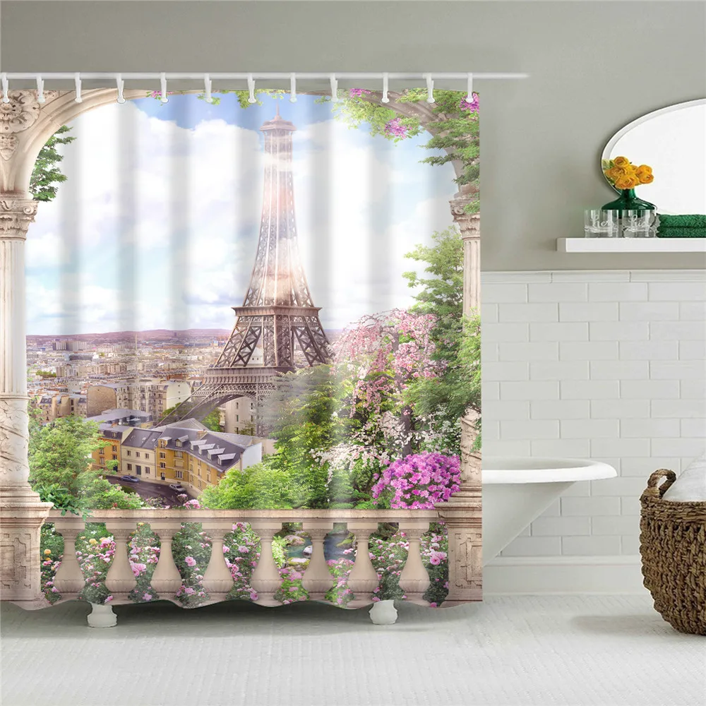 Штора для душа с принтом Эйфелевой башни Парижа, водонепроницаемая ...