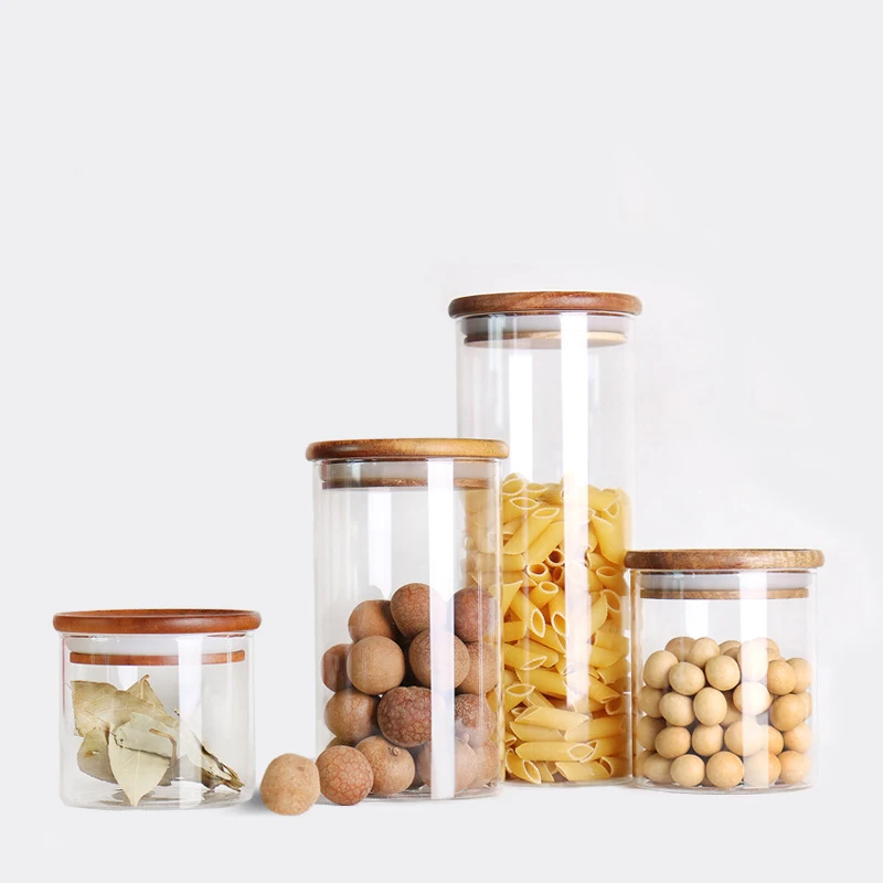 Банки из боросиликатного стекла с бамбуковой крышкой, банки для чая...
