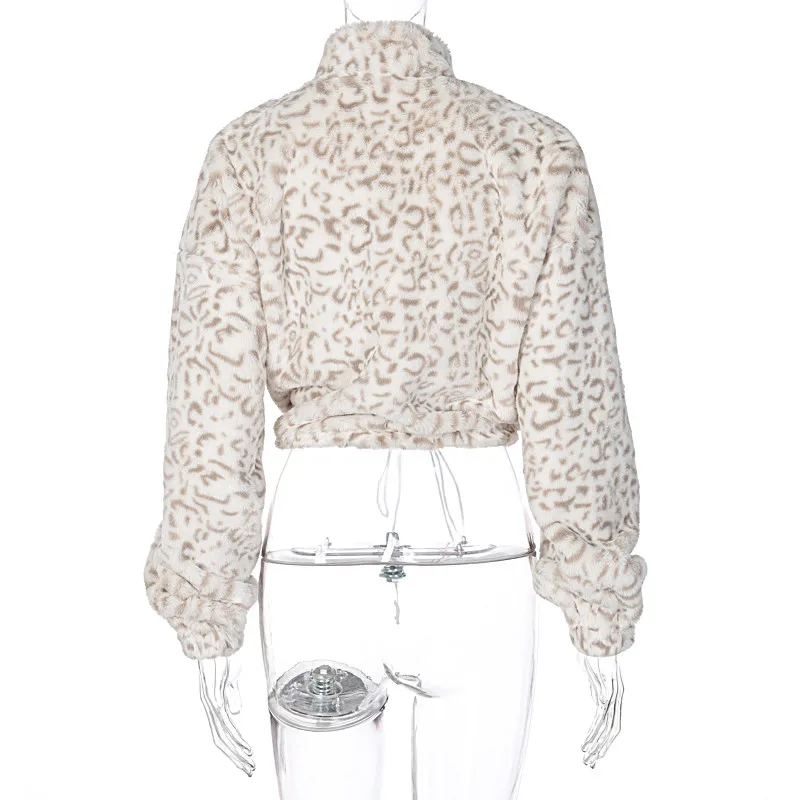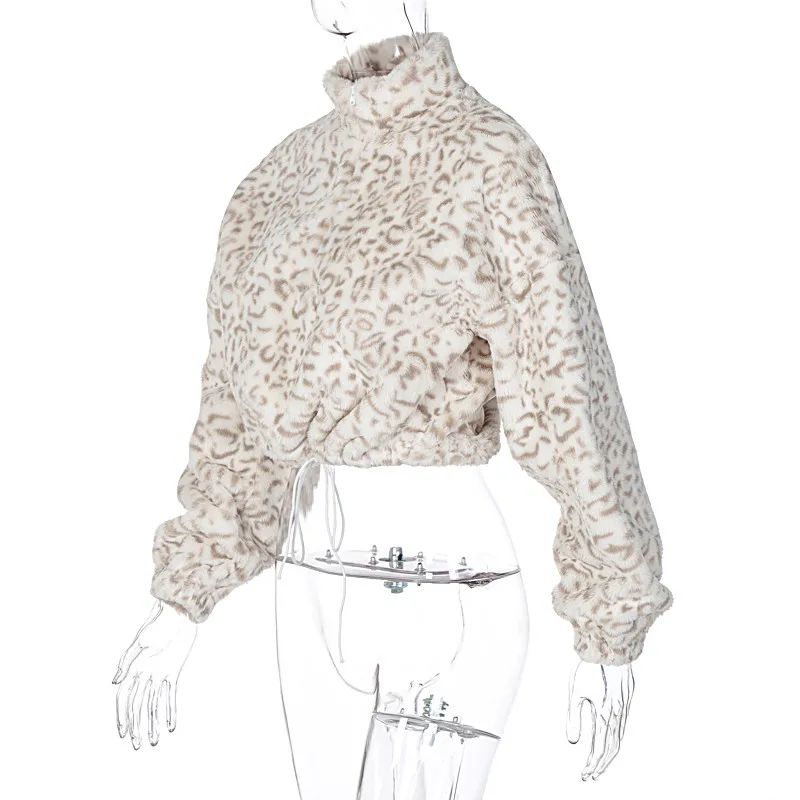 Женский пуловер с высоким воротником, флисовые толстовки с длинным рукавом, верхняя одежда на молнии с воротником и леопардовым принтом для зимы