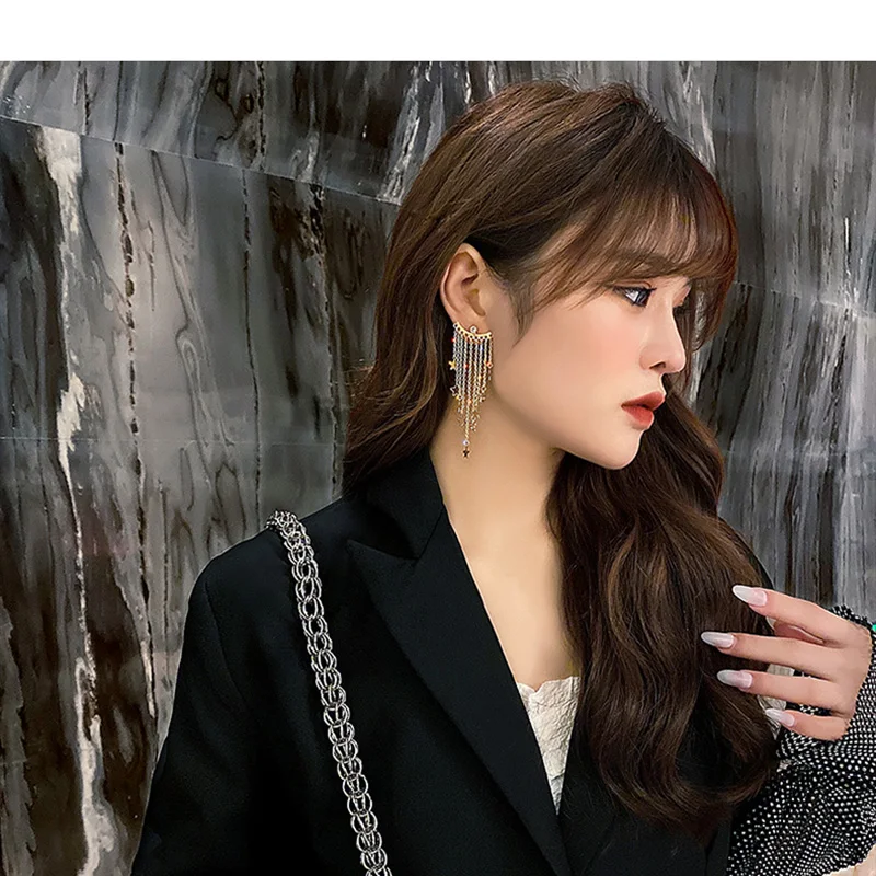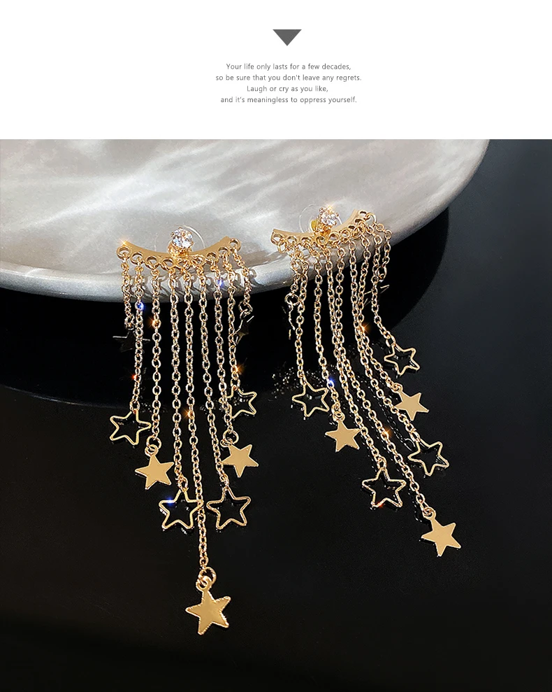 Золотые длинные висячие серьги со звездами и кисточками для женщин, ювелирные изделия, трендовые массивные темпераментные большие серьги 2020, новые рождественские подарки Вечерние