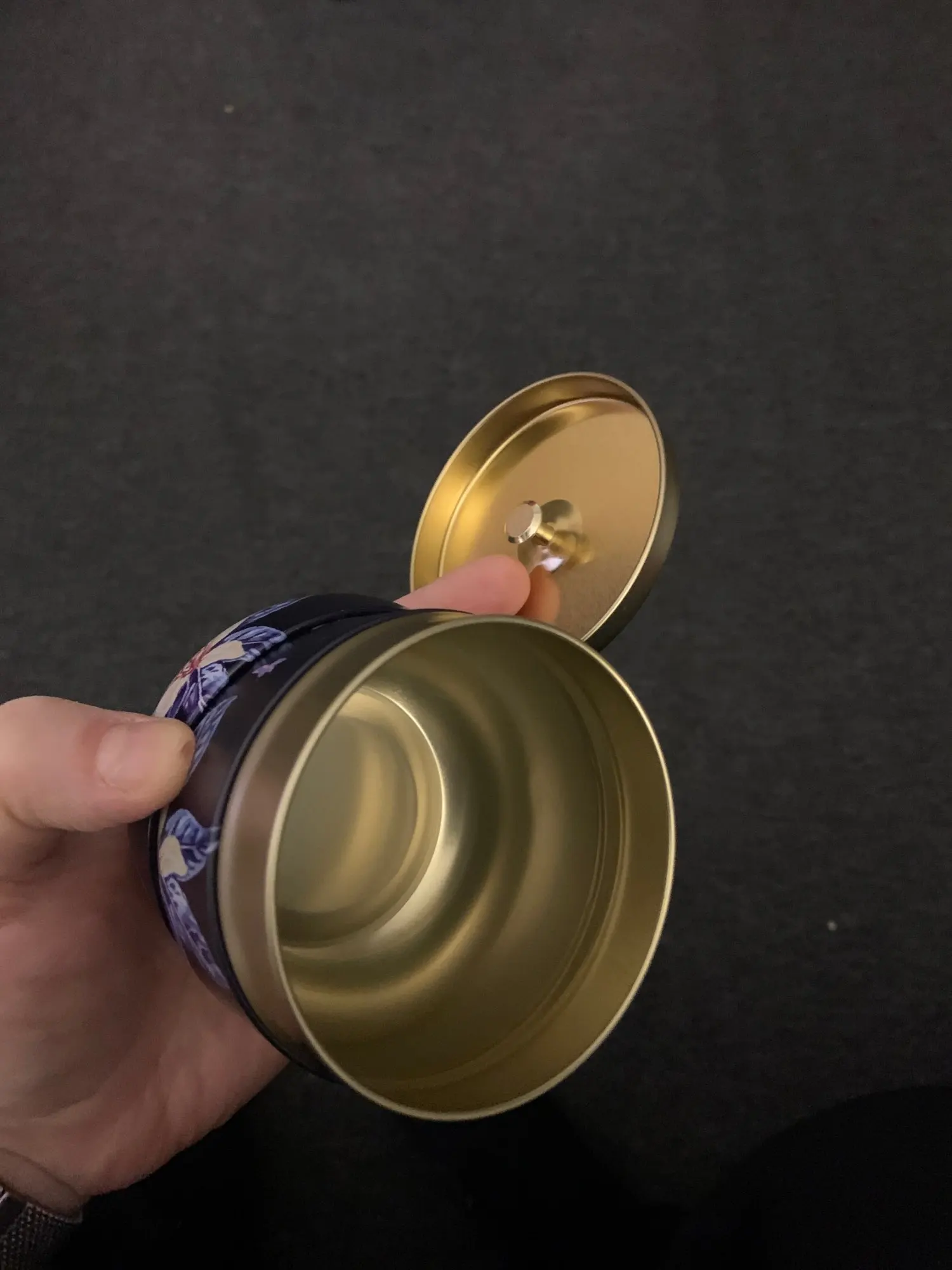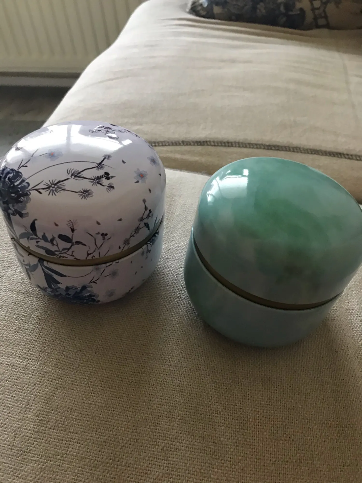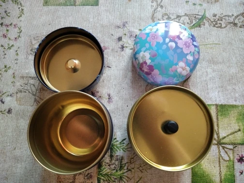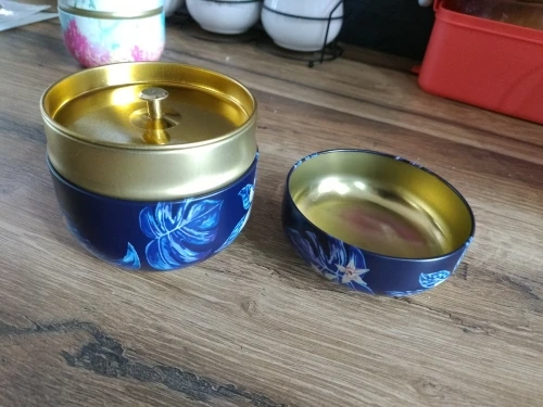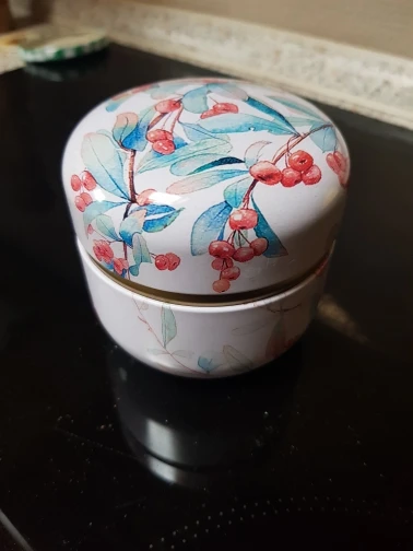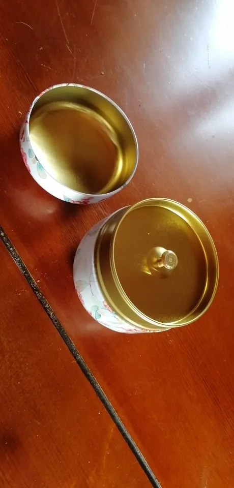Очень красивый олово, прибыл хорошо упакованы. Был больше, чем я себе представлял, очень доволен. Внутреннее уплотнение делает его очень хорошим для хранения чая, специй или всего, что лучше держать герметичным от воздуха.