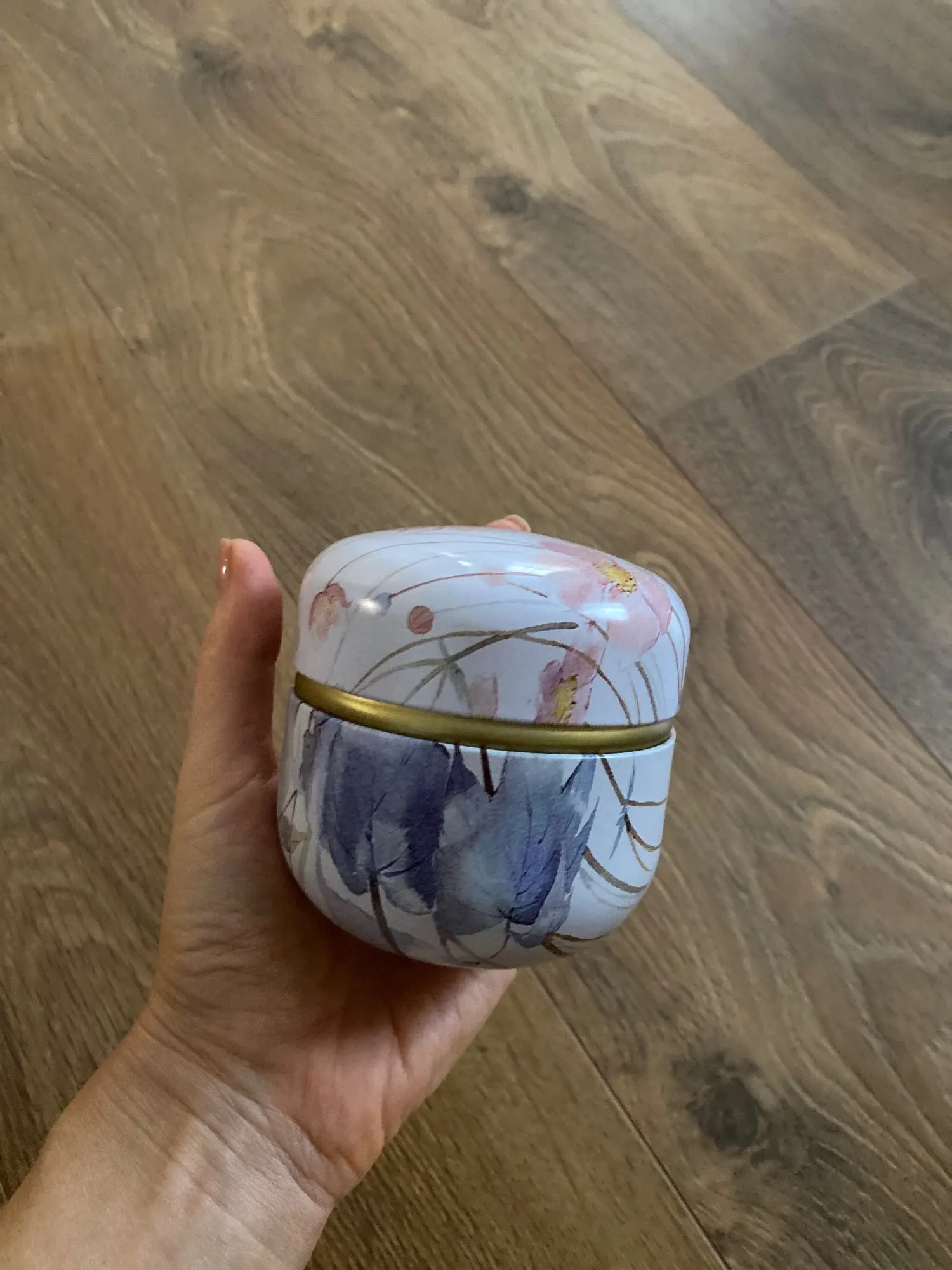 Банка достаточно большая, больше, чем я ожидала. Красивая. Пришла целая, была хорошо упакована в пупырку. Принт не очень четкий, но это видно и на картинке у продавца. Несмотря на это, все равно смотрится очень красиво. Буду хранить в ней чай. С продавцом не общалась