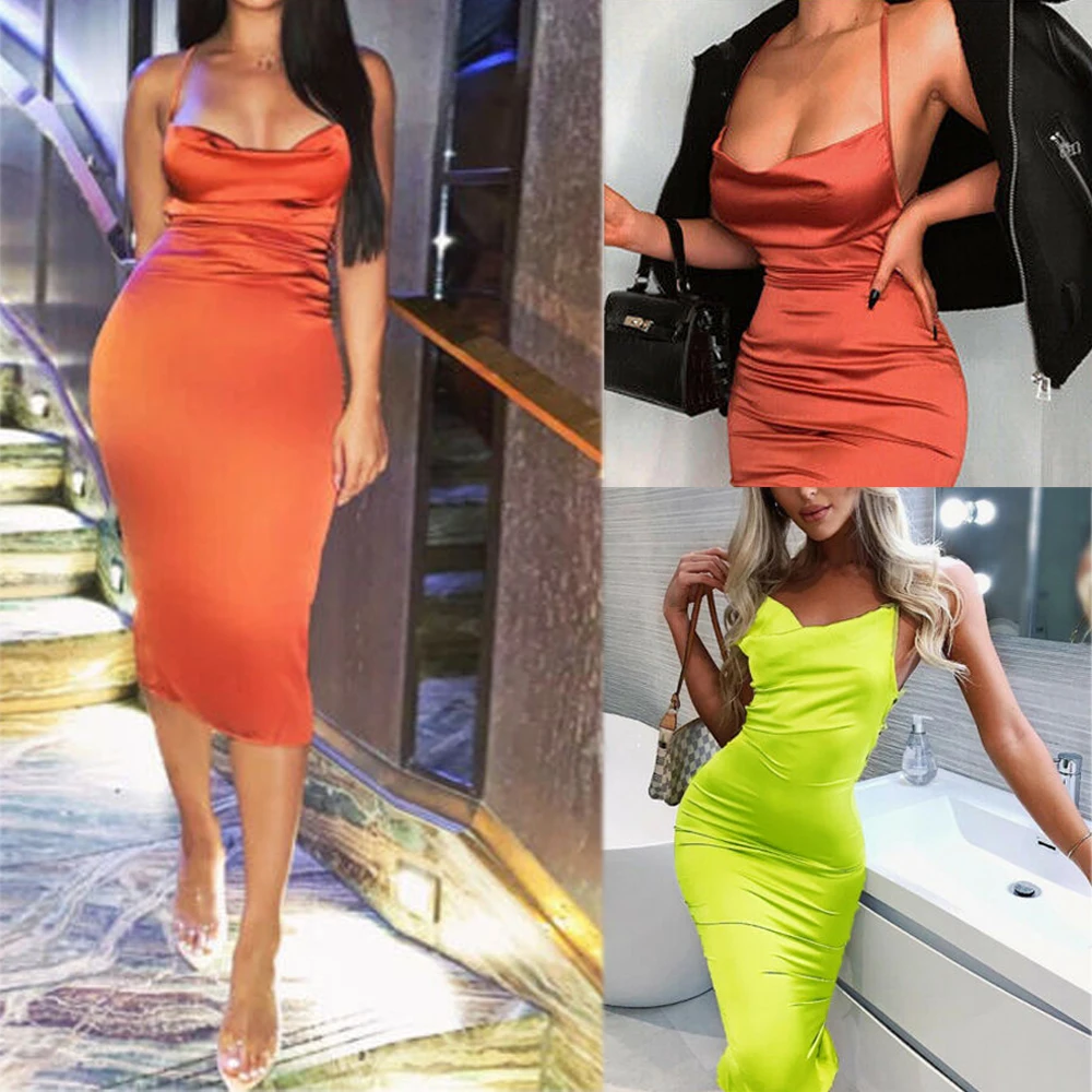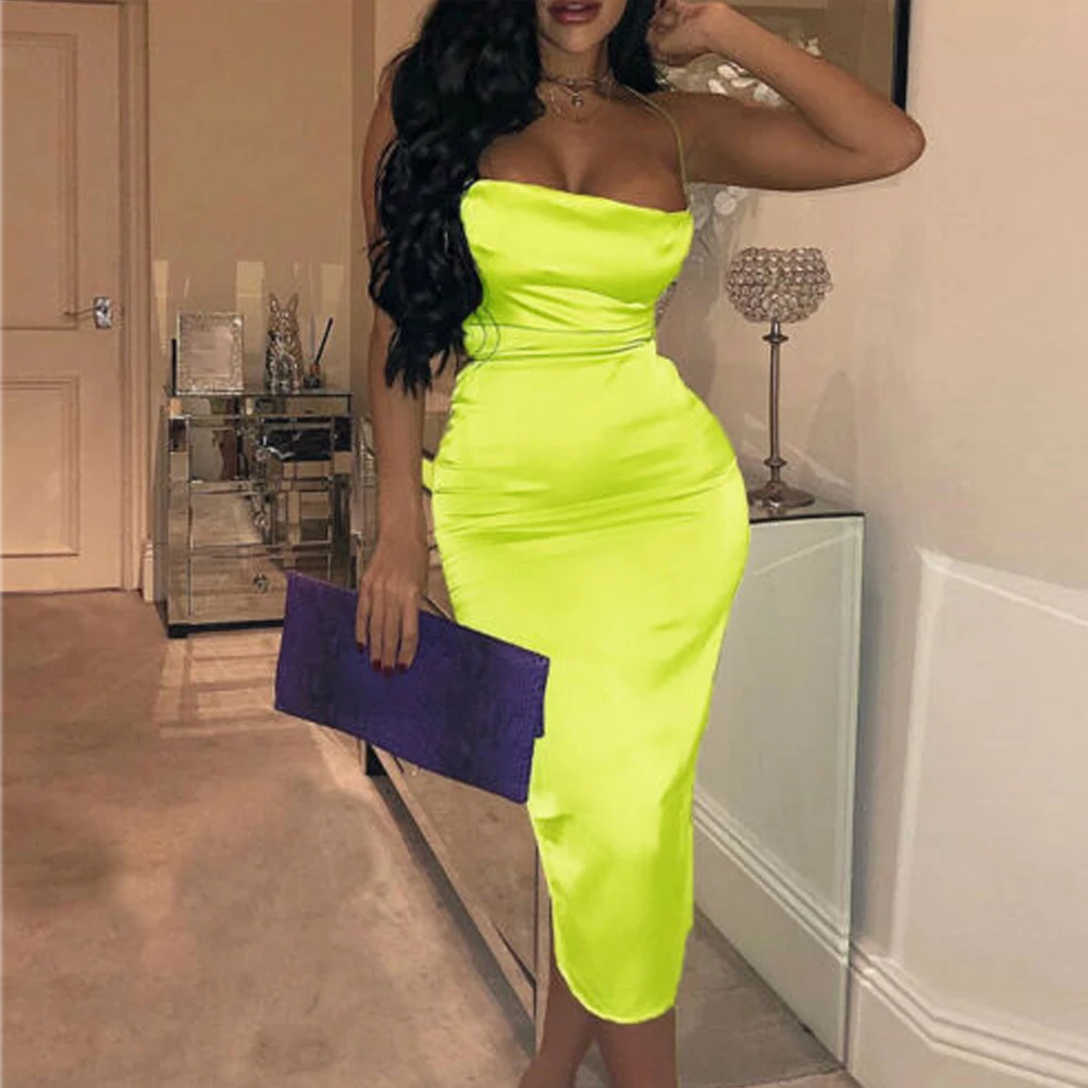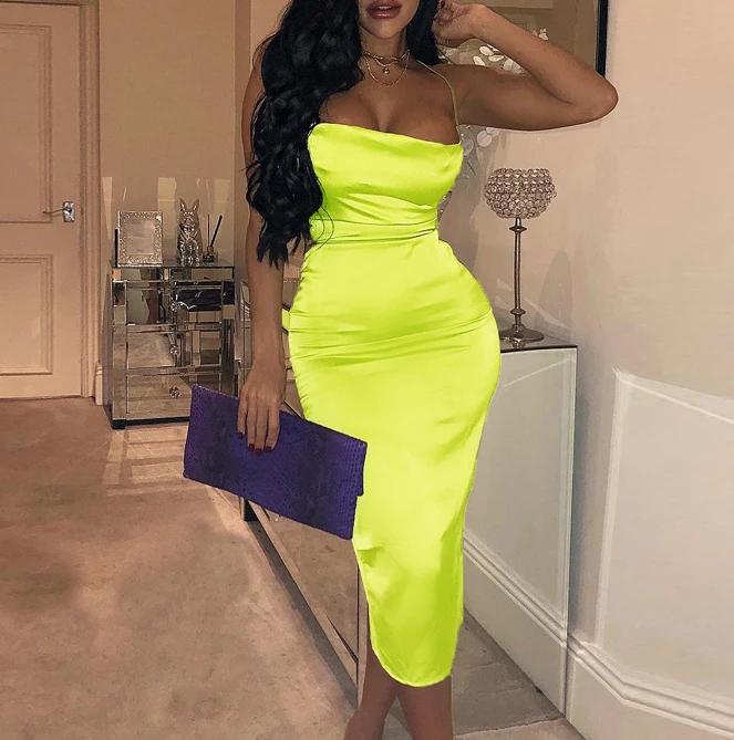 Новинка лета 2021, неоновое атласное облегающее платье средней длин...