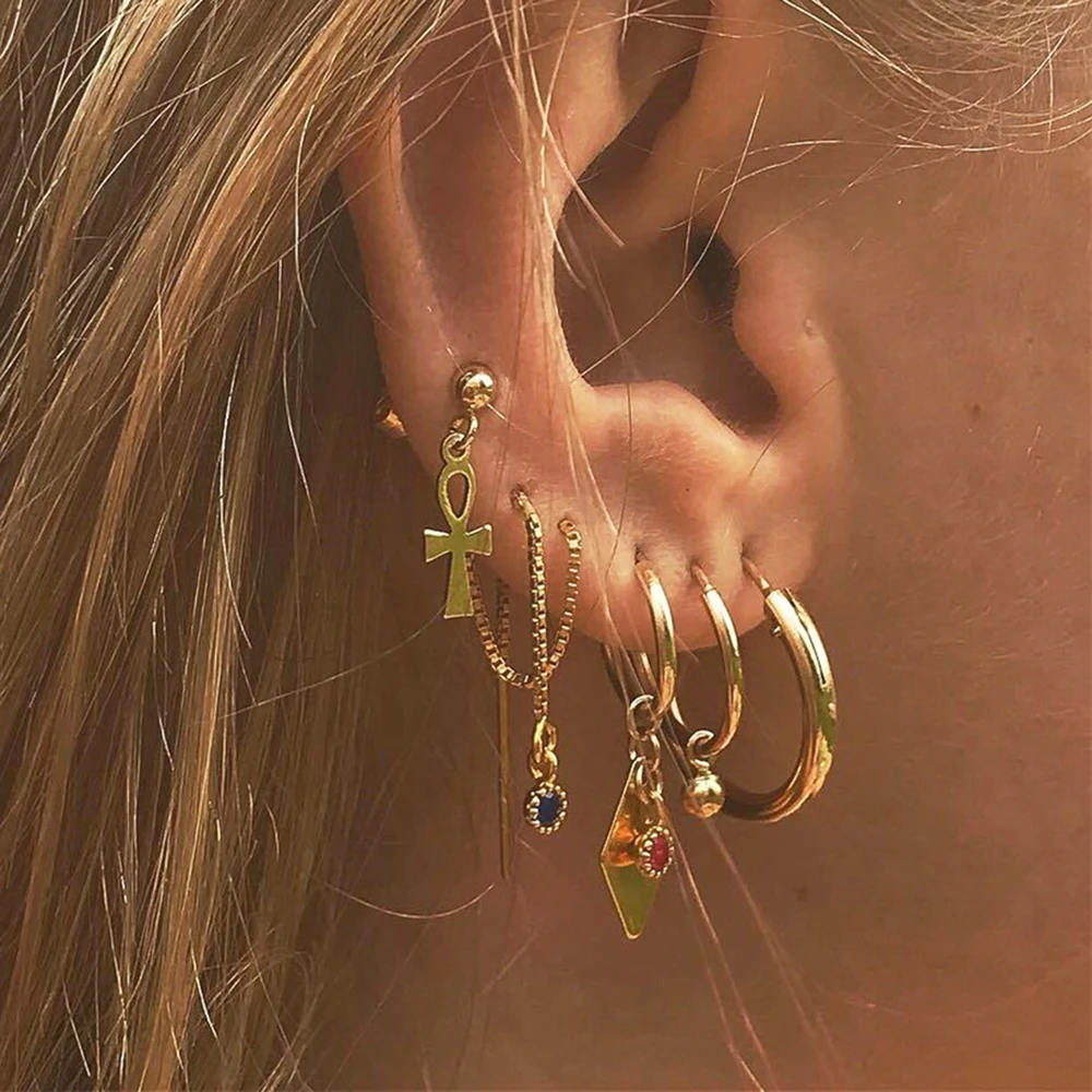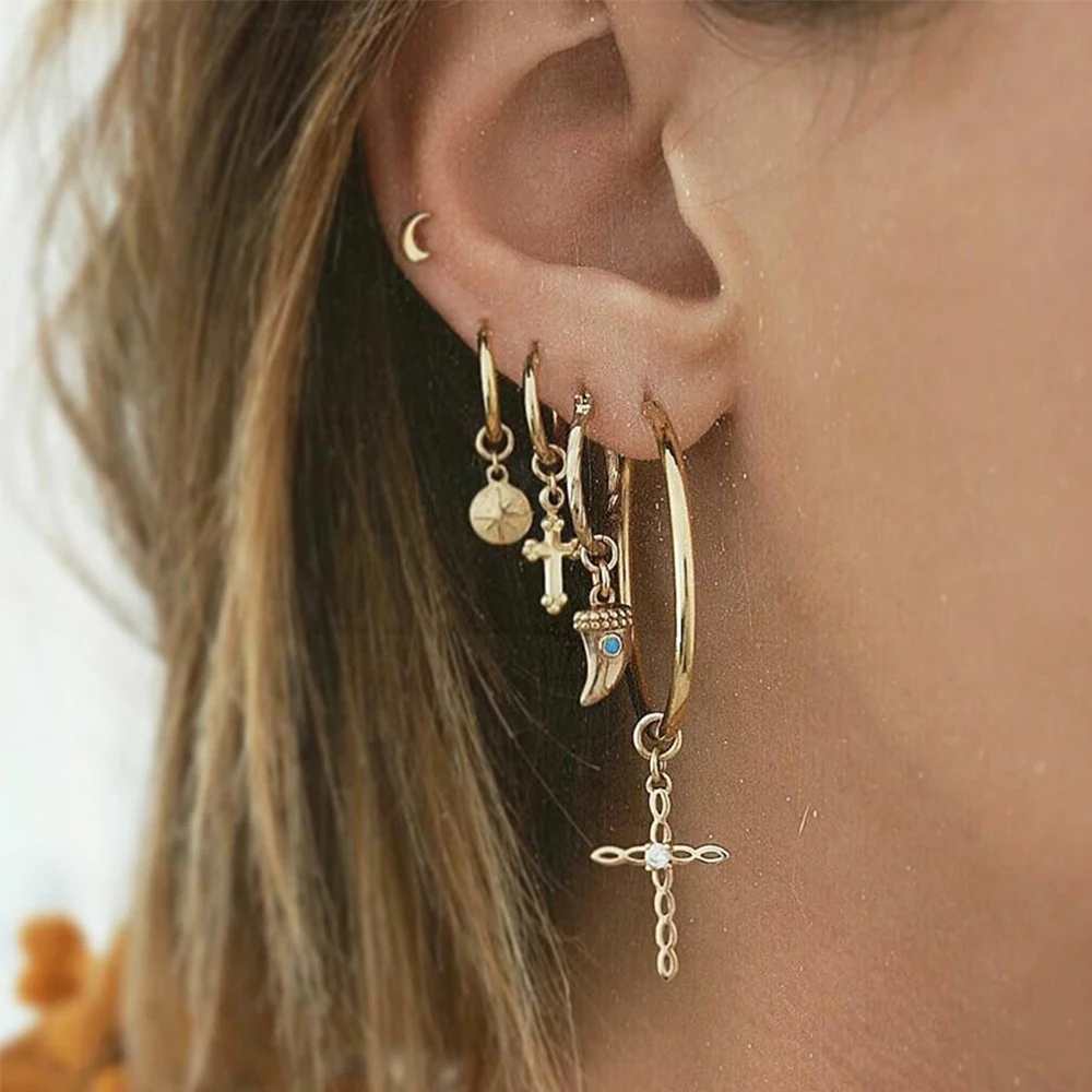 Набор золотых серег в стиле бохо, серьги в форме змеи, сердца, Луны...