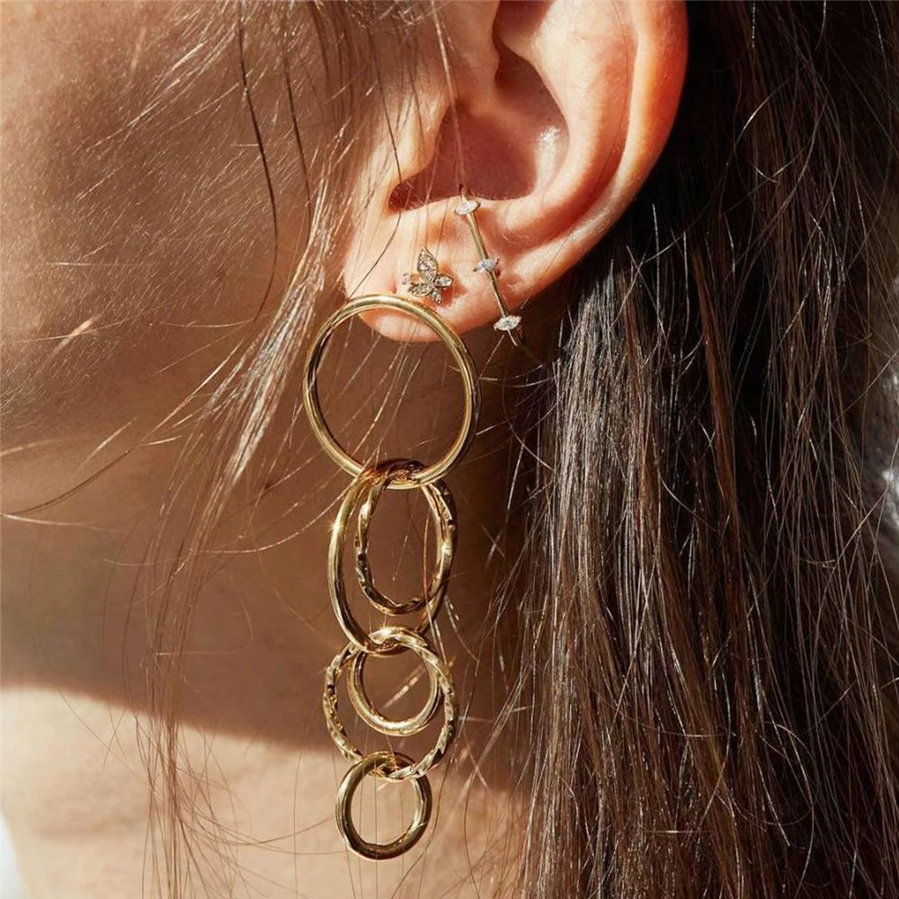Женские серьги в стиле бохо, золотые серьги-кольца, с сердцем, луно...