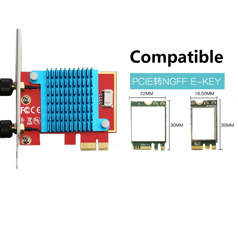Беспроводной адаптер M.2 в PCI Express, конвертер с 2 антеннами NGFF M.2, Wi-Fi, Bluetooth-карта для Intel AX210 AX200 9260 8265 8260