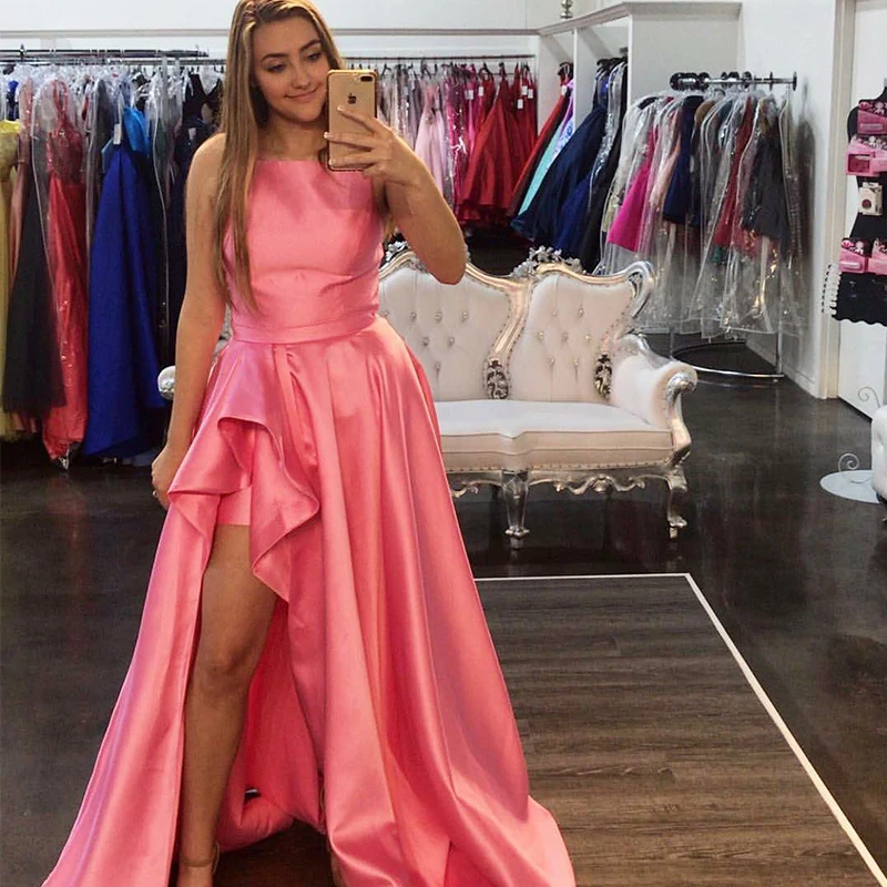 UZN атласное платье трапециевидной формы Съемная юбка платье для выпускного вечера горячая Распродажа овальным вырезом вечернее платье розового цвета с оборками, платье для выпускного вечера