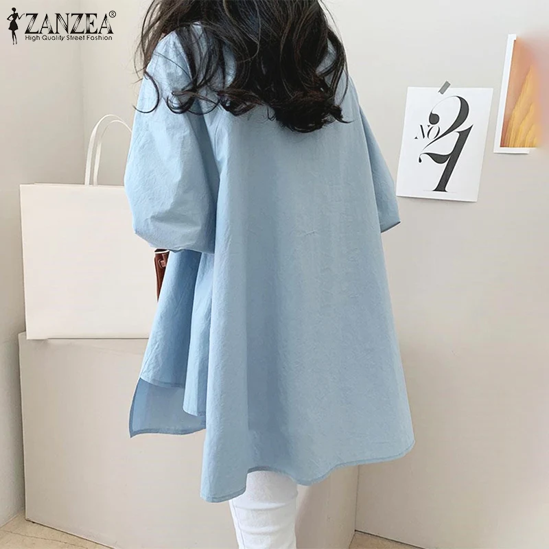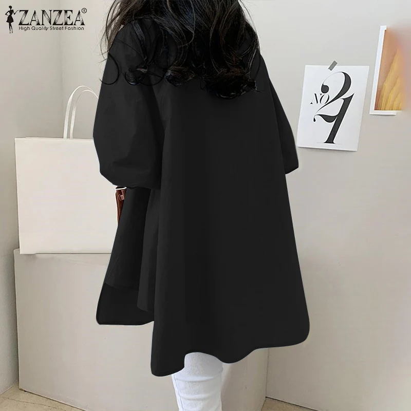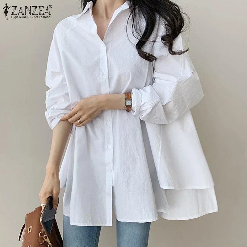 Женская Осенняя блузка с отложным воротником и длинным рукавом, Асимметричный топ, повседневная однотонная блузка ZANZEA, 2021