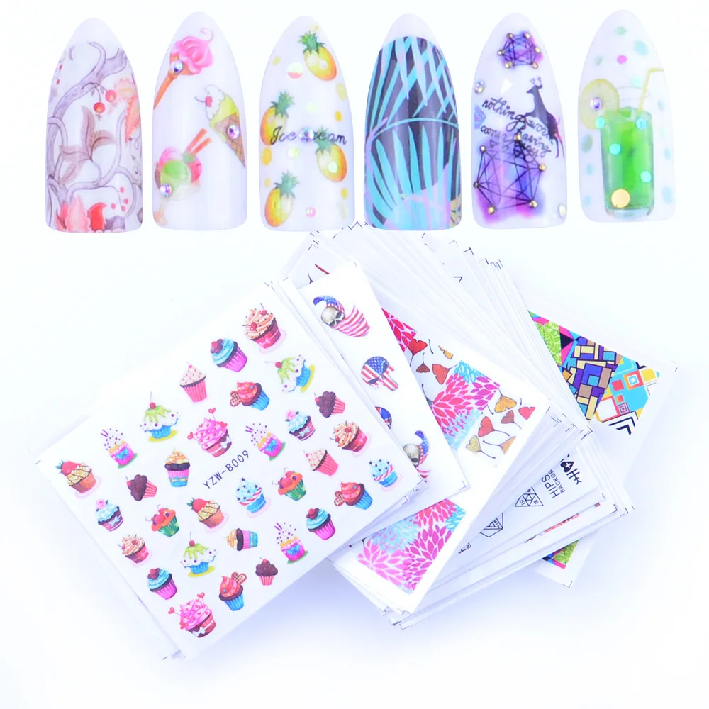 48 видов дизайна ногтей красивые водные наклейки слайдер мультяшный крем торт вишня фрукты чашки маникюрный водные переводные картинки наборы