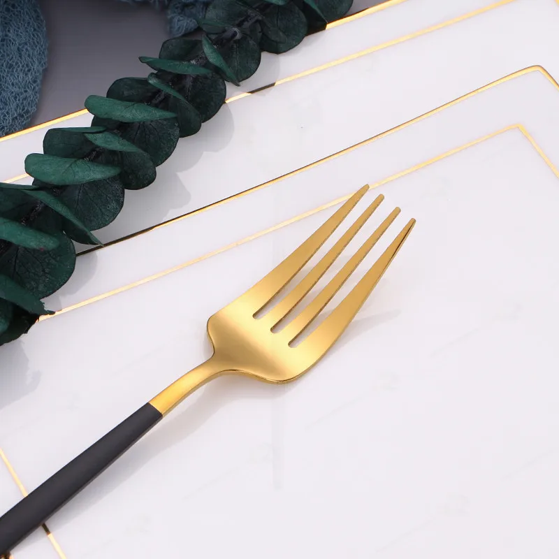 Набор столовых приборов, вилка и ложка золотистые и черные, для кухни и дома