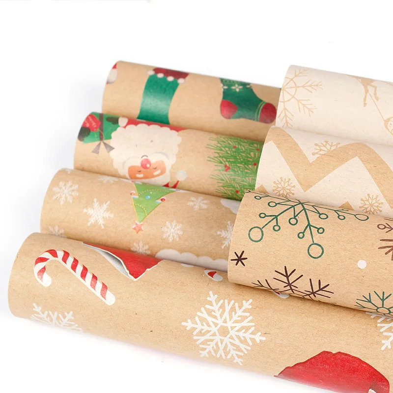 10 шт.лот крафт бумага с рисунком Санты 50*70 см День рождения Рождество Снежинка подарочная упаковочная бумага цветочный материал сделай сам