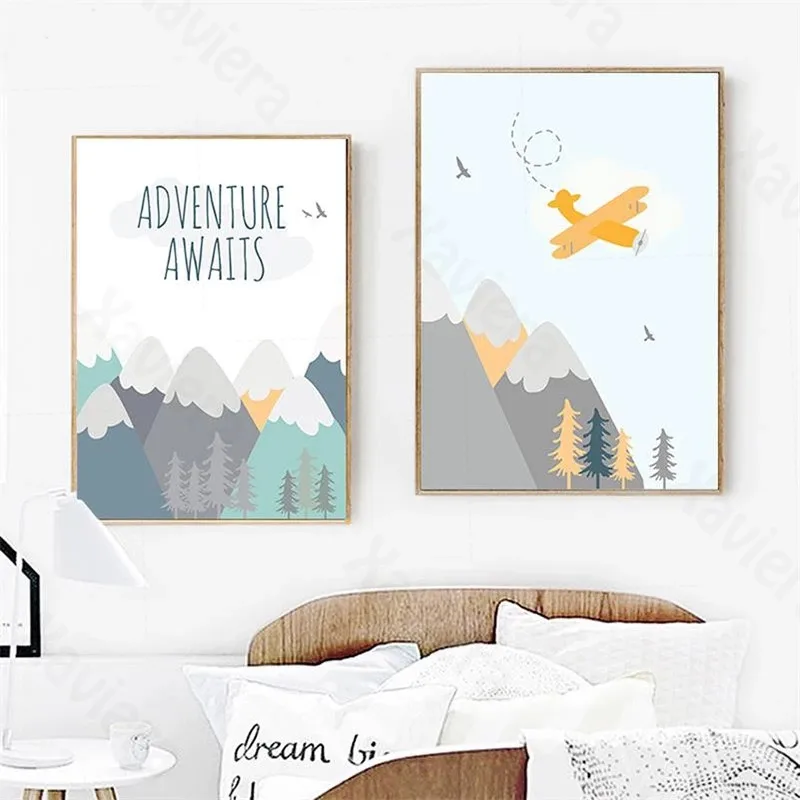 Мультяшные Приключения дух самолет воздушный шар Лес Холст Картина синие постеры украшение дома детская комната