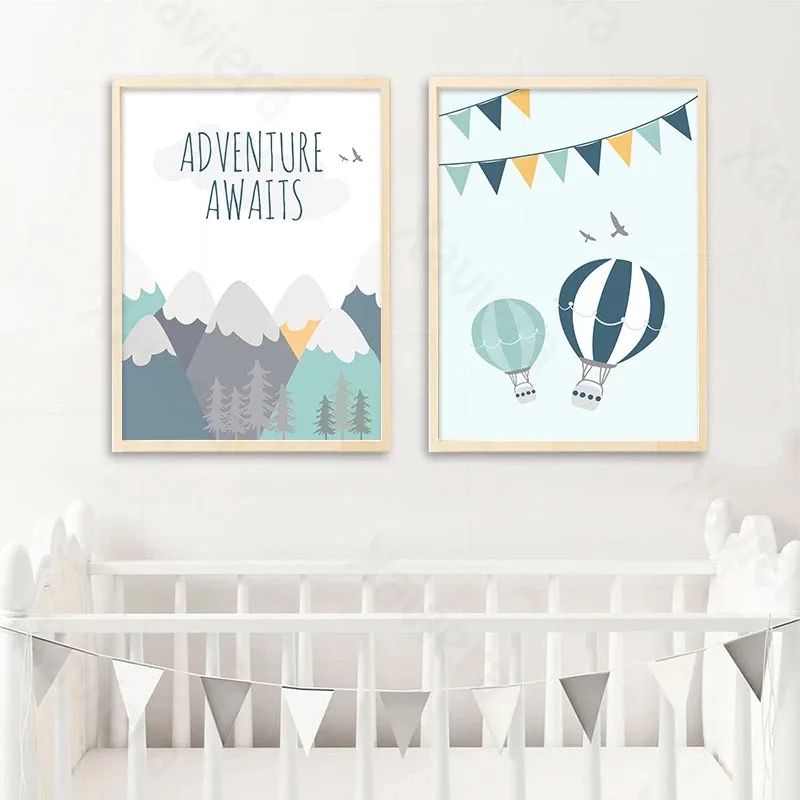 Постер на холсте в скандинавском стиле, цветной воздушный шар, карт...