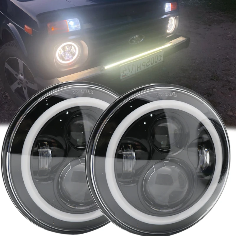 Фары головного света, 7 дюймов, светодиодные, с ближним/дальним светом, ДХО, «ангельские глаза» для внедорожников, Lada Niva Urban, Jeep Wrangler, Suzuki Samurai, 2 шт.