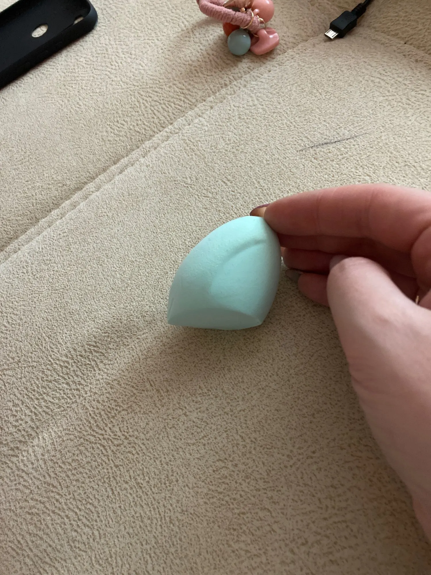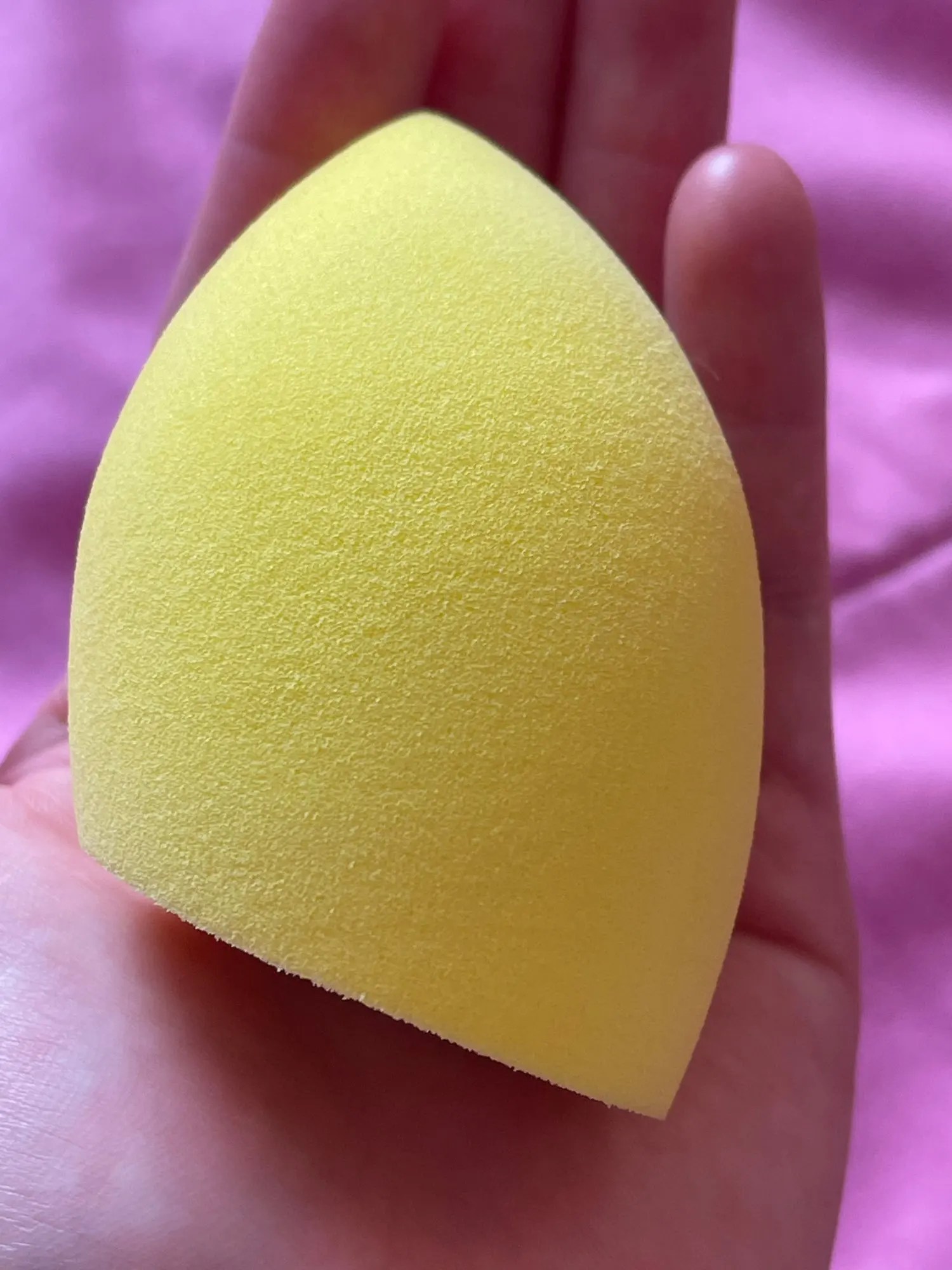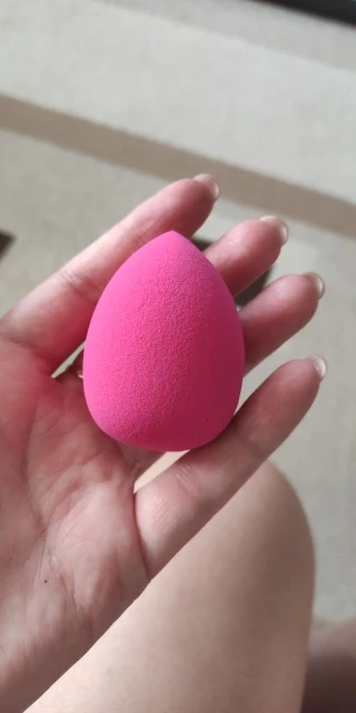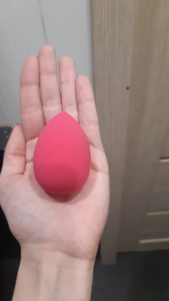 Спонжик реально хороший когда он пришёл он был очень упругим и маленьким. Когда я решила накраситься я помыла спонжик и он очень набух и был мягким.