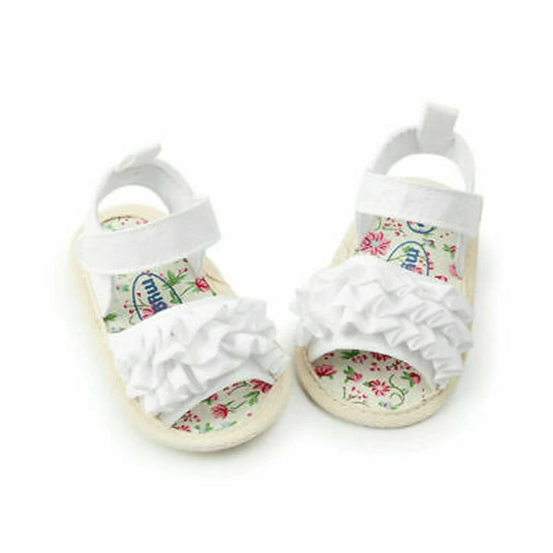 Сандалии для маленьких девочек 0-18 месяцев, мягкая обувь для детской кроватки с оборками и цветами, летняя обувь для первых шагов