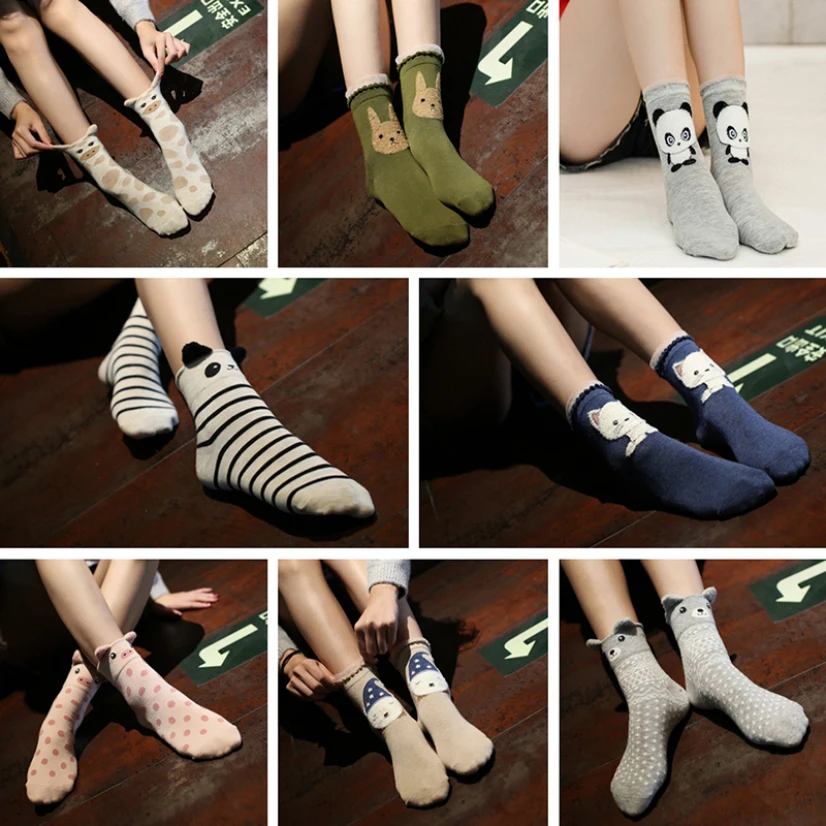Носки женские хлопковые теплые, милые Мультяшные, с животными, панд...