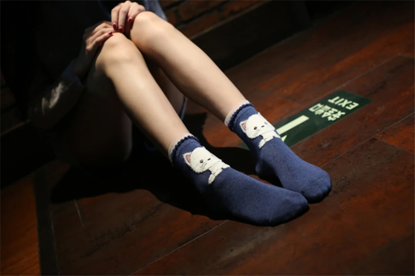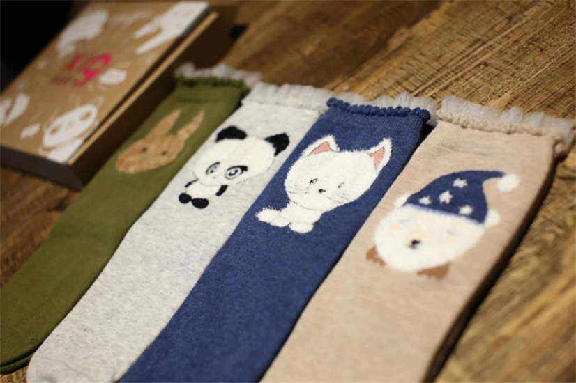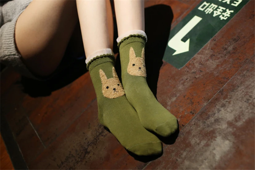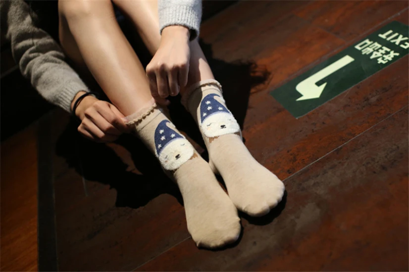 Милые носки женские осенне-зимние теплые носки для девочек из забавные женские носки хлопка с ушками в японском стиле