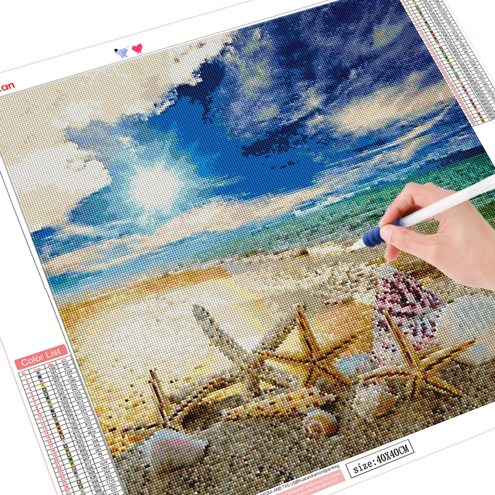 HUACAN 3D полная дрель Алмазная картина в виде ракушки Стразы Алмазная вышивка морской пейзаж мозаика пляжный домашний декор