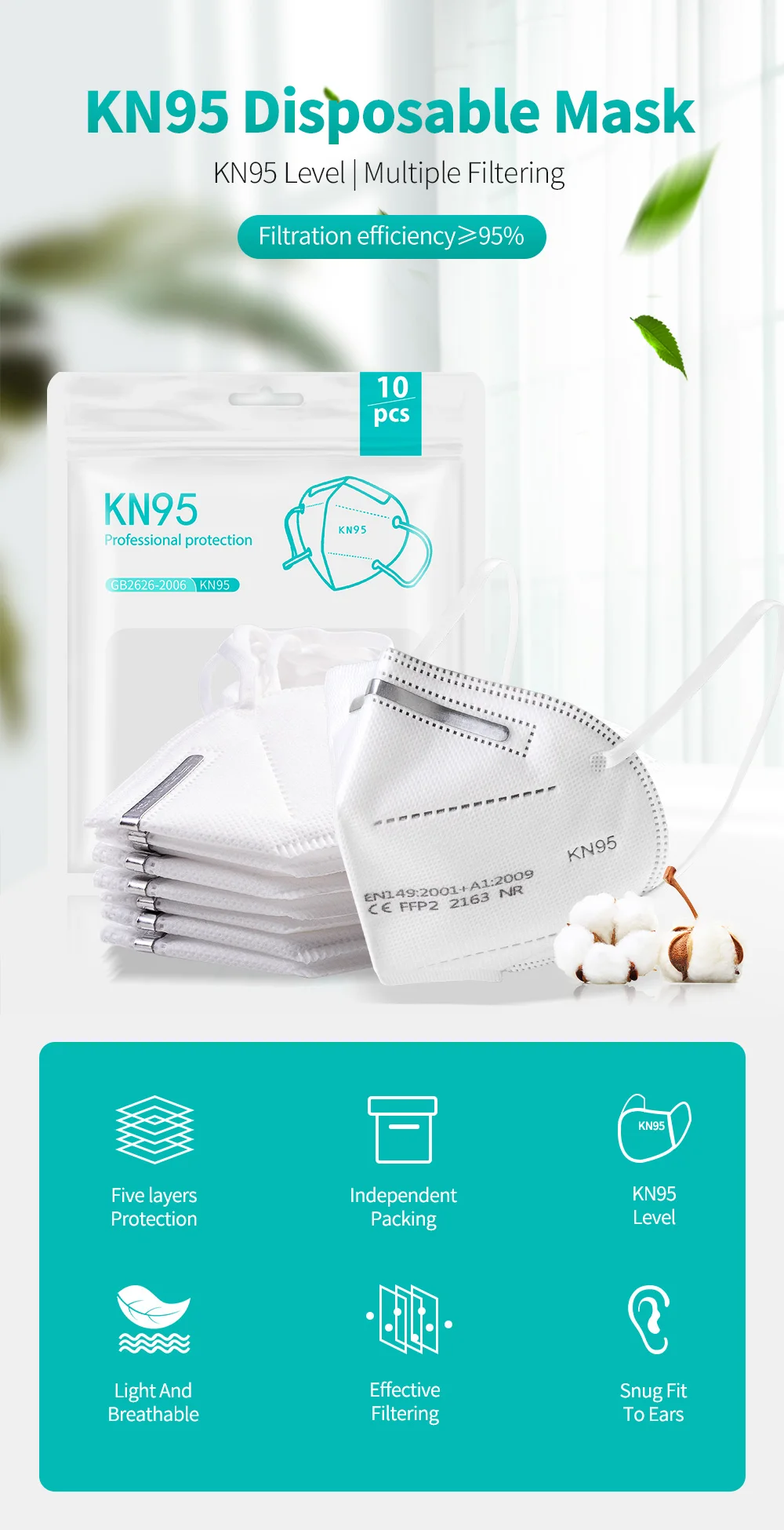 Маска KN95 FFP2 для взрослых, 5 слоев, 1050100 шт.