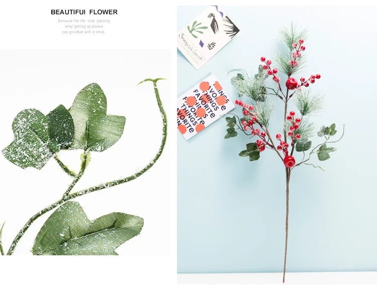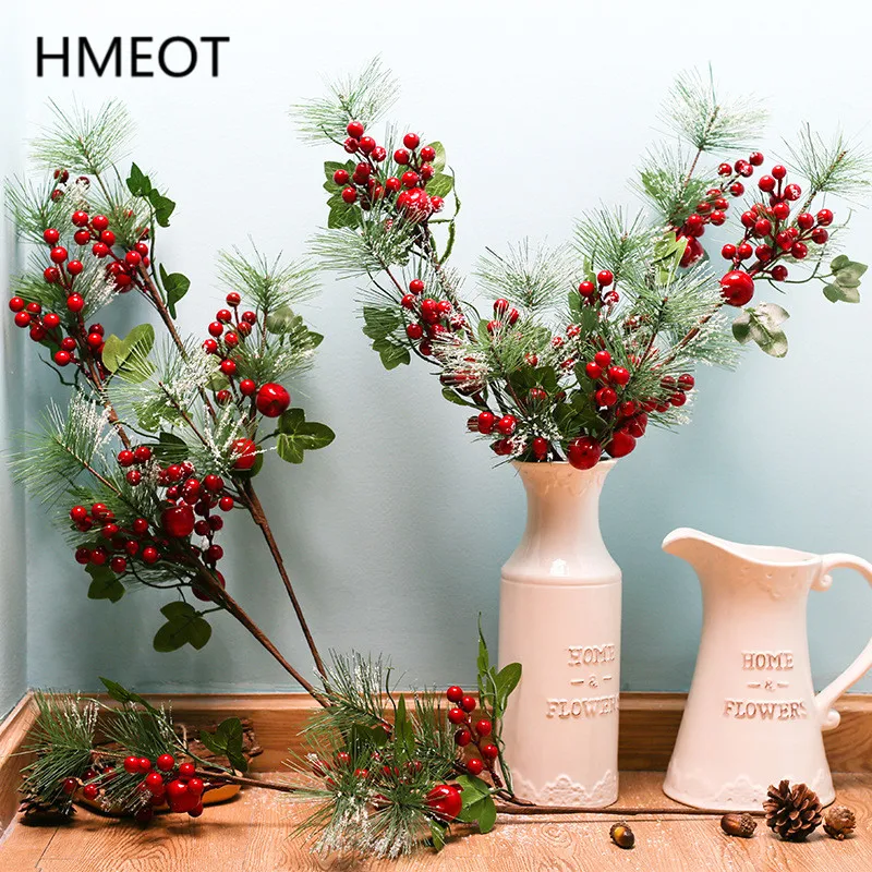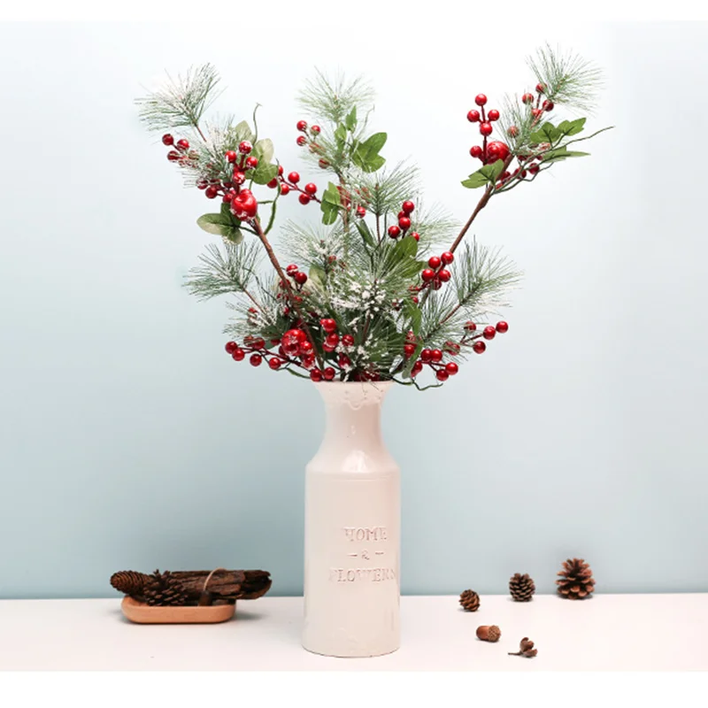 Искусственные цветы сосновые ветви с ягодными красными фруктами Рождественская декорация гостиная стол домашний декор настенная Цветочная композиция