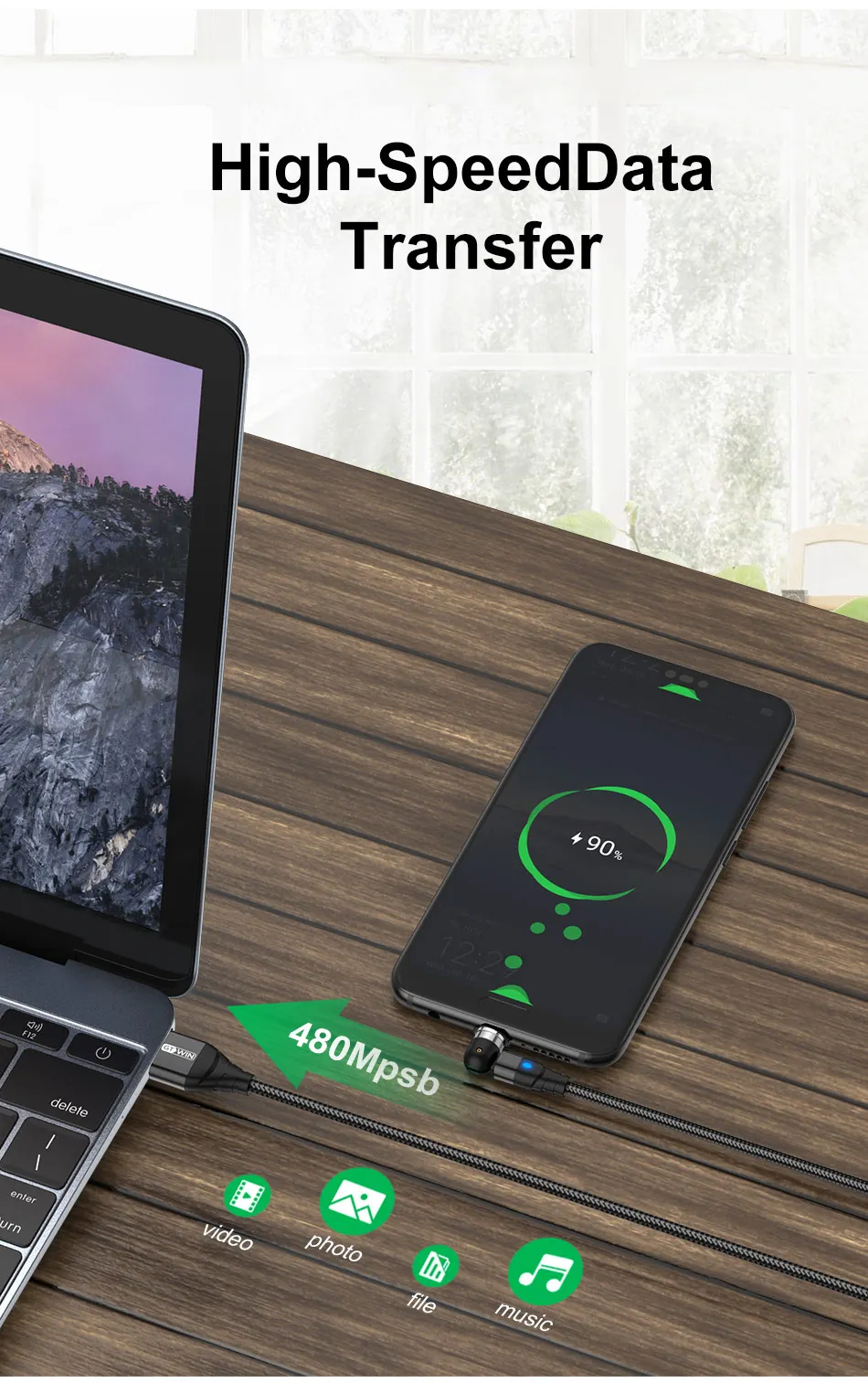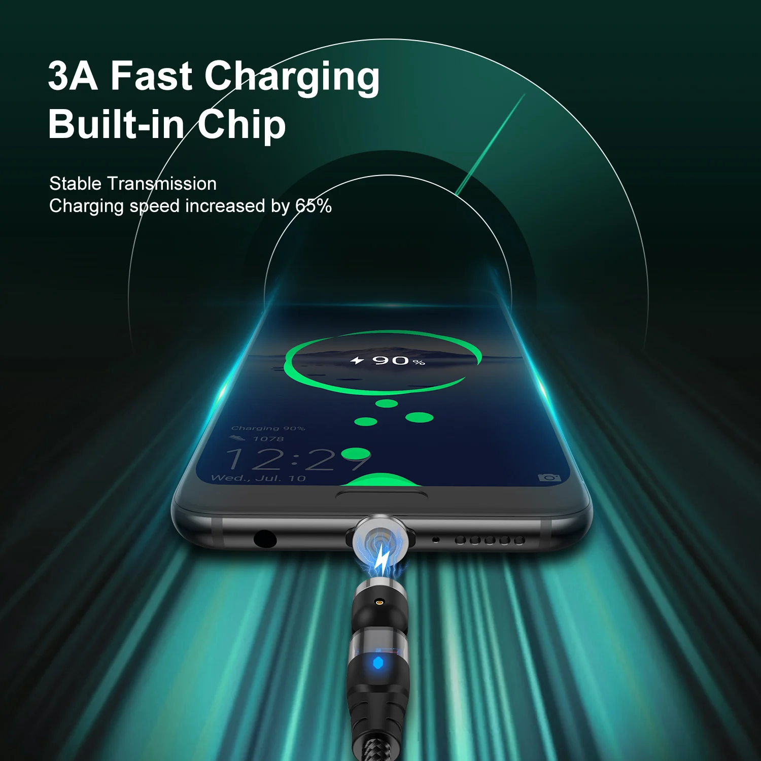 Магнитный USB-кабель GTWIN для зарядки iPhone, зарядное устройство с поворотом на 540 градусов, кабель USB Type-C для Xiaomi, Samsung, Магнитный зарядный кабель Micro USB