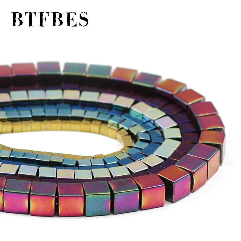 BTFBES, синий, золотой, фиолетовый, зеленый, светло-зеленый, квадрат, Форма гематит Натуральный камень свободные бусины для самостоятельного изготовления ювелирных изделий браслет Findings2346 мм