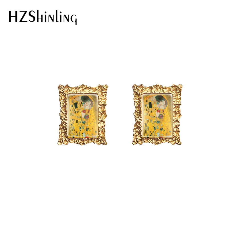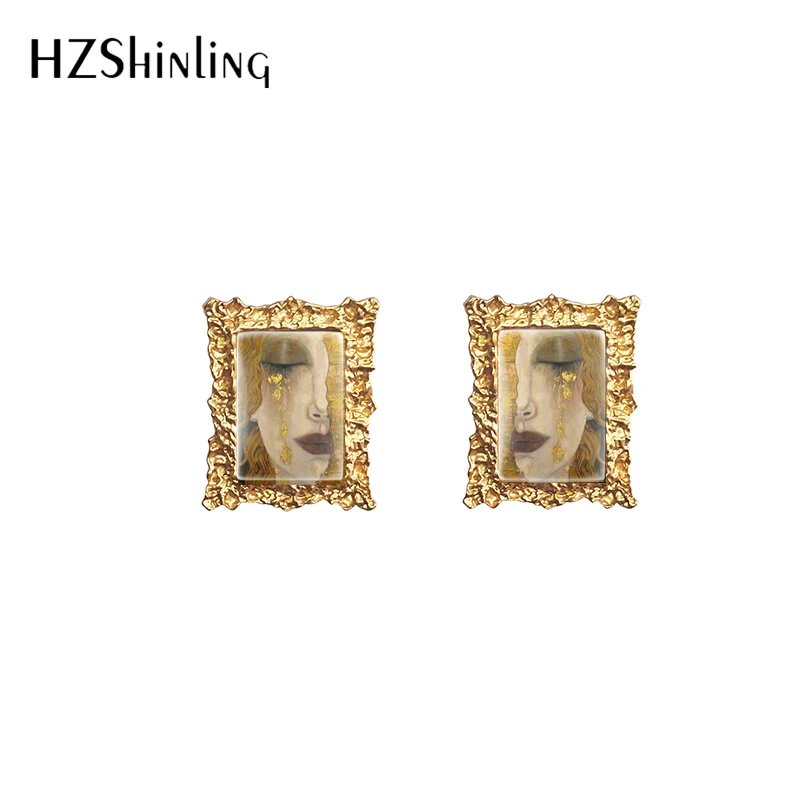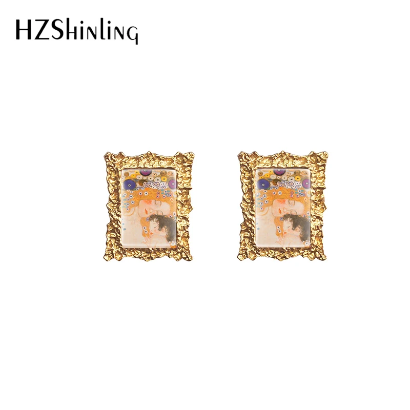 Винтажные серьги, 2020, для матери и ребенка, картина Густава Климта, с принтом поцелуев, Золотые слезы, бижутерия со стеклянными кабошонами