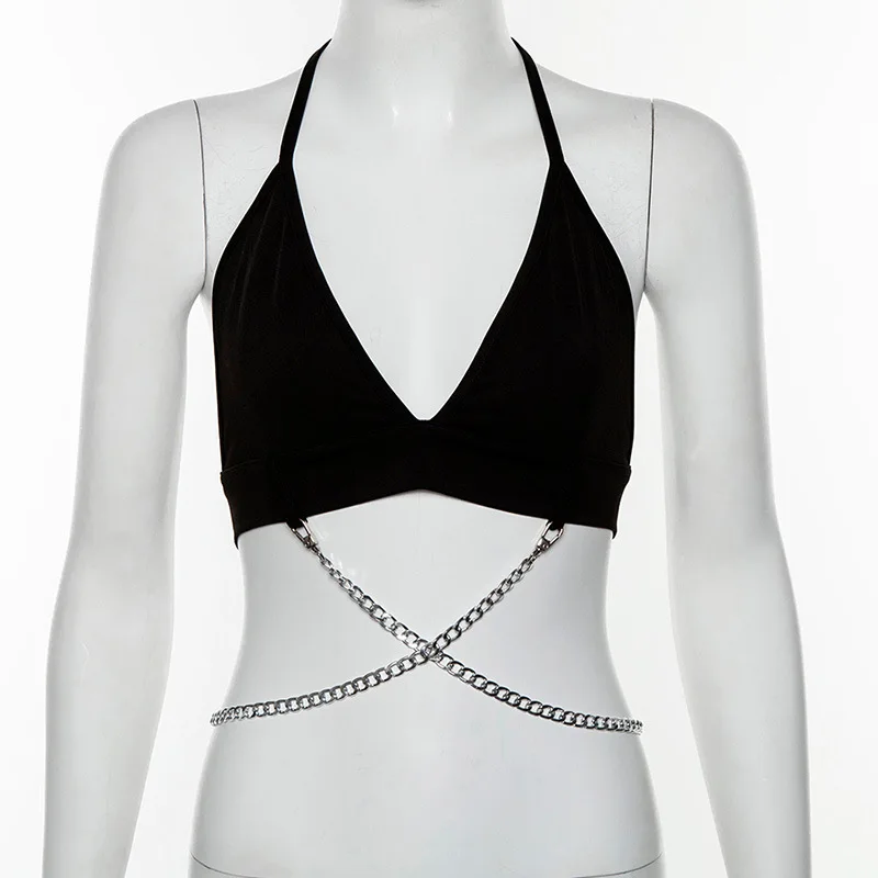 Nibber летний панк декоративная металлическая цепь укороченный Топ ...