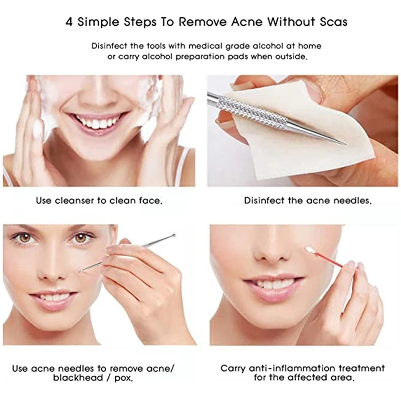 4 шт. Компл. Иглы для удаления черных точек, очиститель черных точек, средство для удаления пятен из нержавеющей стали, игла для лечения акне, инструмент для чистки лица