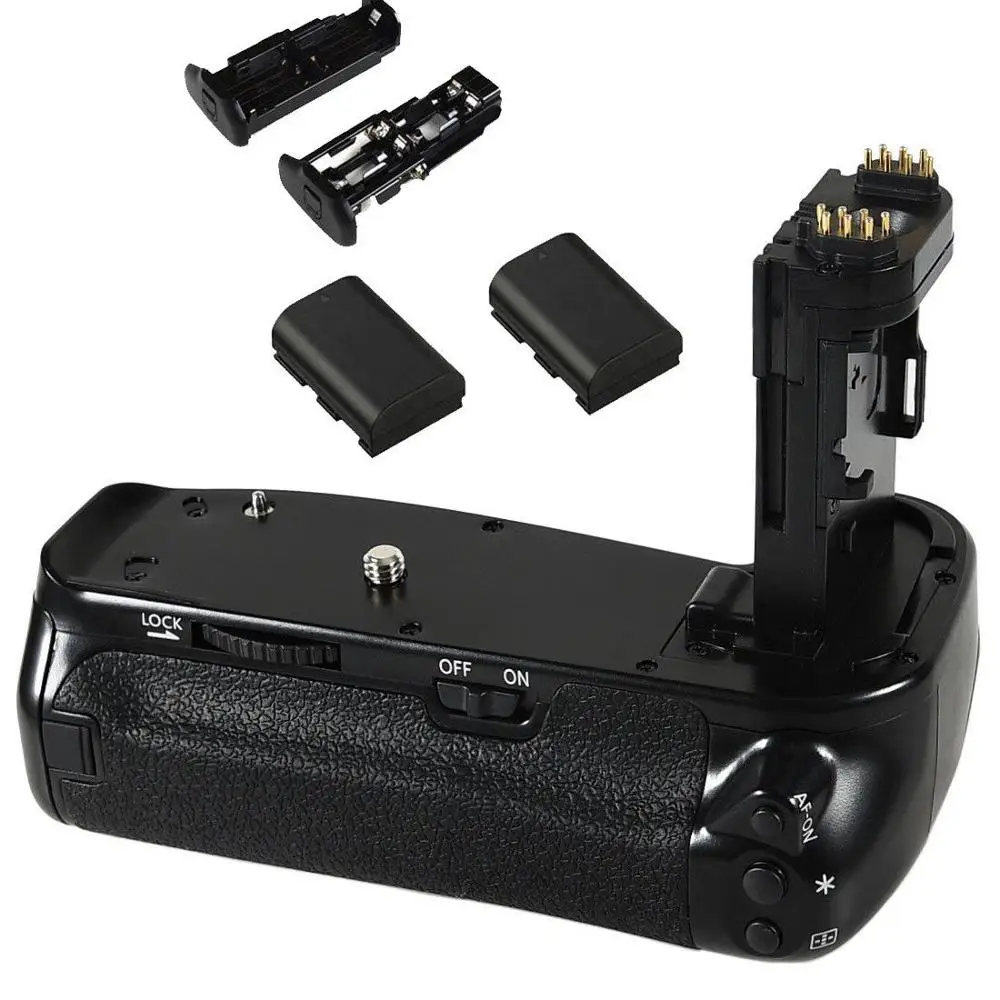 Эта Батарейная ручка/держатель совместима с камерами Canon EOS 70D. Он имеет все те же функции, что и оригинальный батарейный блок Canon BG-E14. Рукоятка имеет встроенную вертикальные жалюзи-кнопку отпускания и может удерживать два LP-E6 литий-ионных аккумулятора или шесть батарей AA с помощью прилагаемого держателя батареи.
