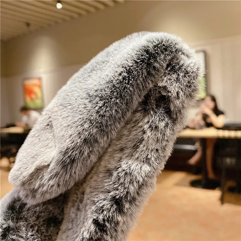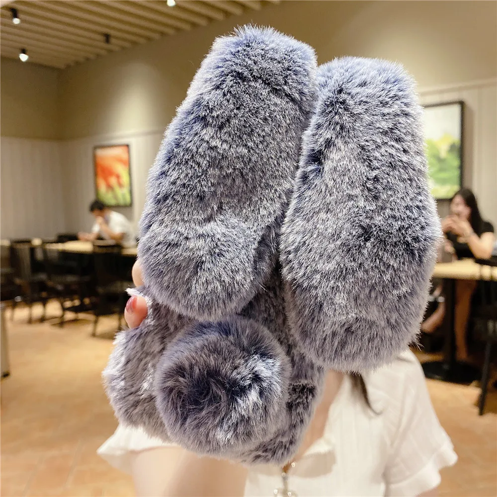 Мягкий плюшевый милый пушистый чехол с кроличьими ушками для телефона iPhone 11 12 Pro Mini, теплый чехол для iPhone X XR XS Max 7 8 Plus SE 2020, чехол