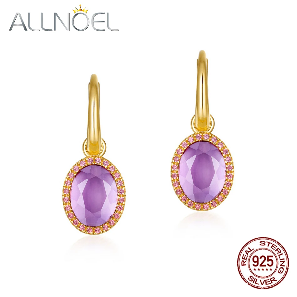 ALLNOEL, Серьги из стерлингового серебра 925 пробы, Серьги, модные ювелирные изделия, овальный аметист, дизайнерские украшения 2022, подарок на день рождения, Новинка