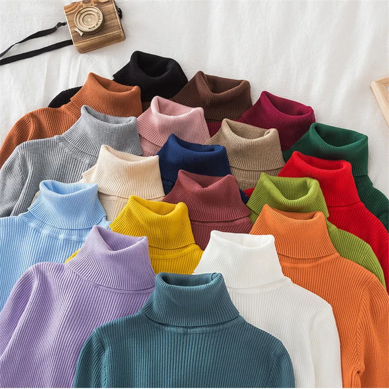 2020 новый с высоким, плотно облегающим шею воротником для женщин пуловер свитер на весну джемпер вязаный базовый топ для детей модная осенняя одежда с длинными рукавами в Корейском стиле женская одежда 30