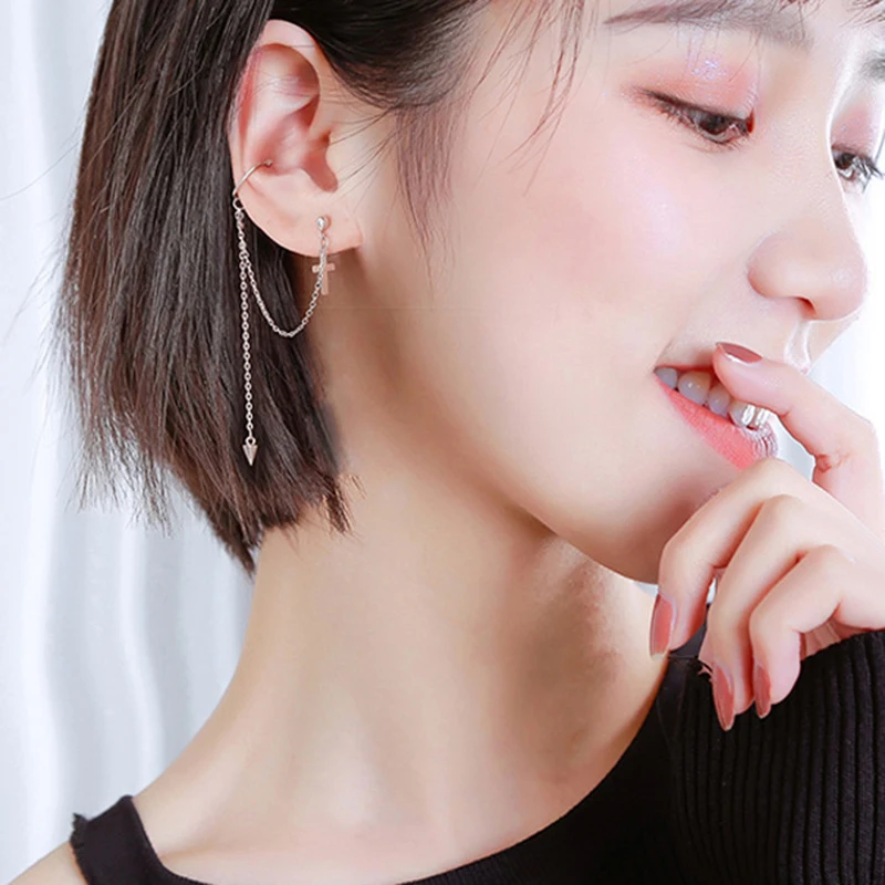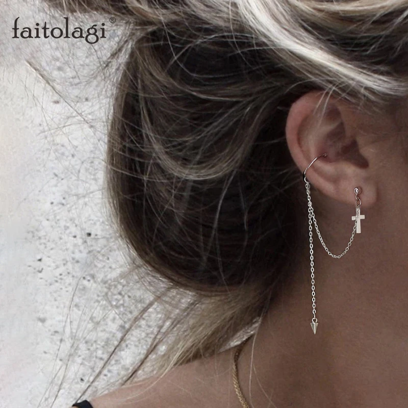 Серьги для пирсинга в стиле хип-хоп женские, простые геометрические ювелирные украшения для Длинная кисточка, цепочка прокола под серебро вечерние ле