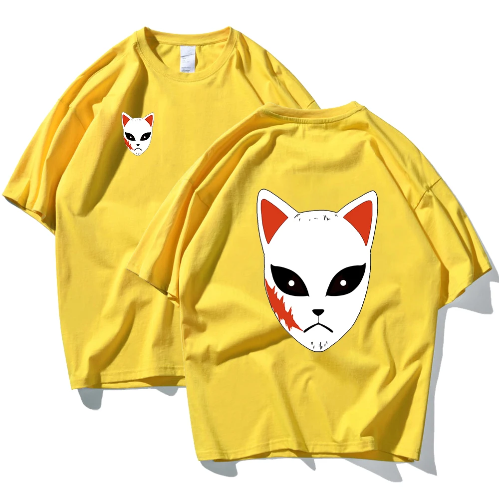 Демон убийца двухсторонняя печать футболка для мужчин Аниме Повседневная одежда со свободным узором модная футболка Повседневная пот дышащие топы