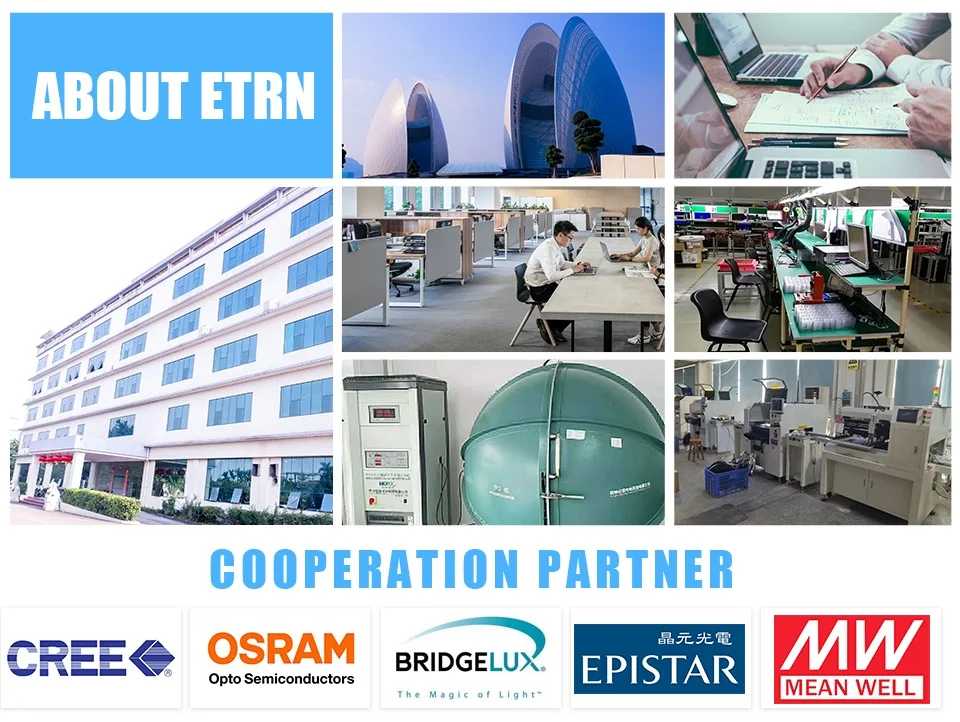 Zhuhai ETRN Technology Co., Ltd. является профессиональным производителем мини светодиодных ламп, интегрирующих R & D, дизайн, производство, продажи и обслуживание, мы были созданы в 2002 году с зарегистрированным капиталом в 3 миллиона. Мы имеем сильную систему НИОКР и маркетинга с годовой стоимостью продукции более чем 10 миллионов долларов США. В основном мы предоставляем клиентам по всему миру высококачественную световую продукцию, Электронную Продукцию, электрическое оборудование, сопутствующие материалы и компоненты, а также разработку новых продуктов, услуги ODM и OEM. Мы всегда имели положительный энтузиазм к инновациям и стремимся быть вашим лучшим партнером.