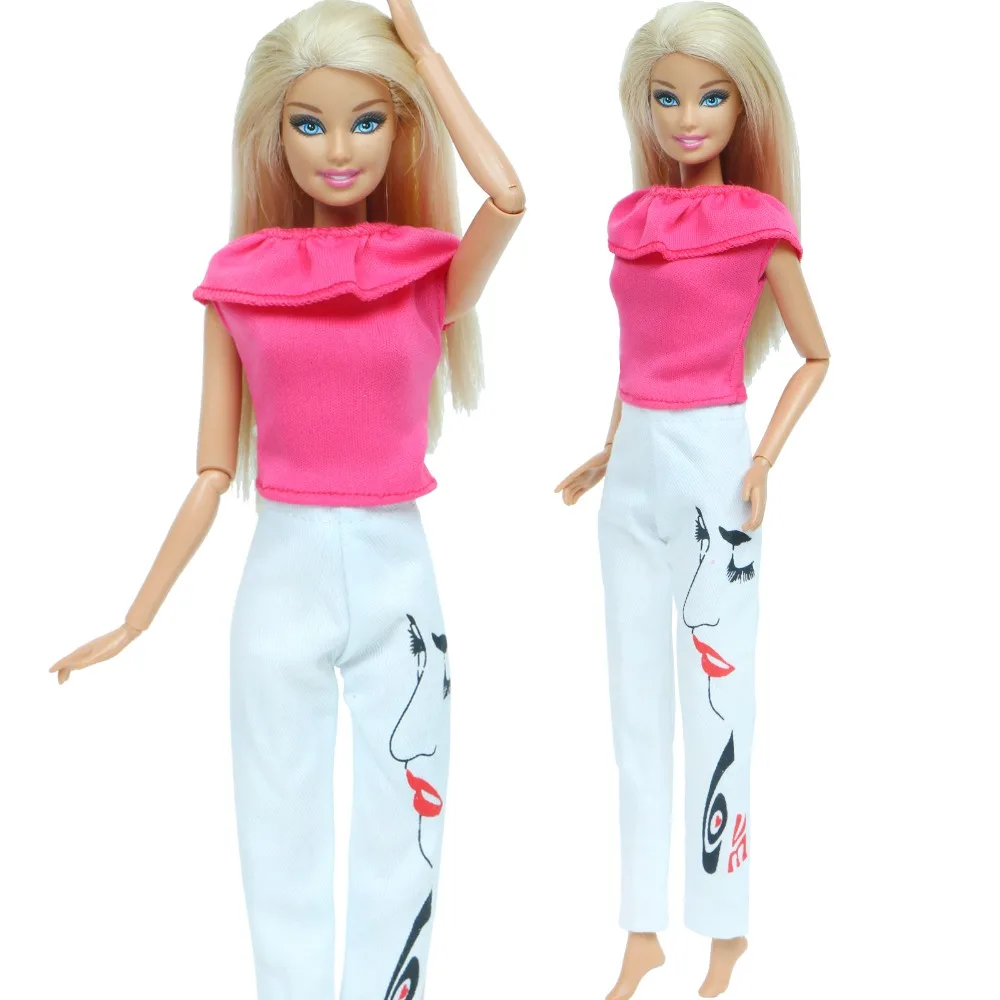 Модная спортивная одежда, повседневная одежда, розовая футболка, белые брюки, аксессуары, одежда для куклы Барби, маленькая девочка, домашняя игрушка сделай сам