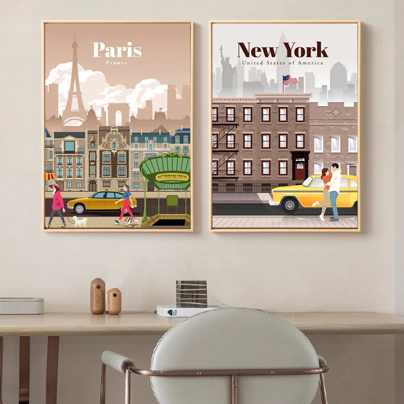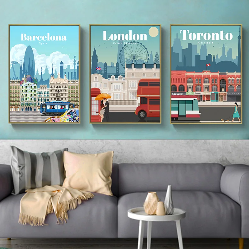 Настенная Картина на холсте Лондон Нью-Йорк Париж Испания винтажные...