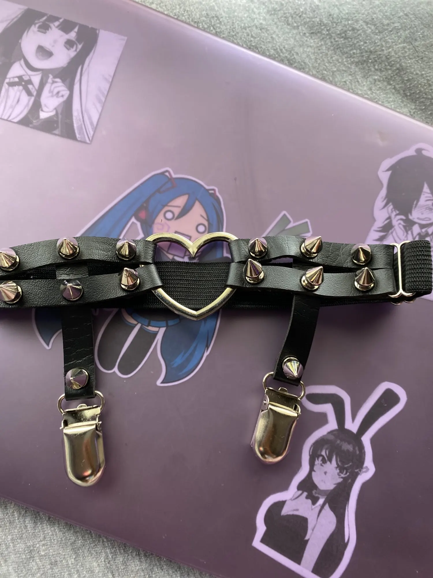 Сексуальная Панк-подвязка, металлические заклепки, кольцо для ног, бедра, в форме сердца, бретельки для бедер, черные, из искусственной кожи, пояс для подтяжек для тела