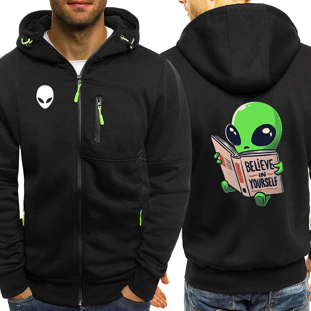 Зеленый Alien с надписью Believe In Yourself; Мужская куртка в стиле хип-хоп с ворсом уличная осень 2020 Мода с капюшоном Harajuku Винтаж Для мужчин на молнии с капюшоном