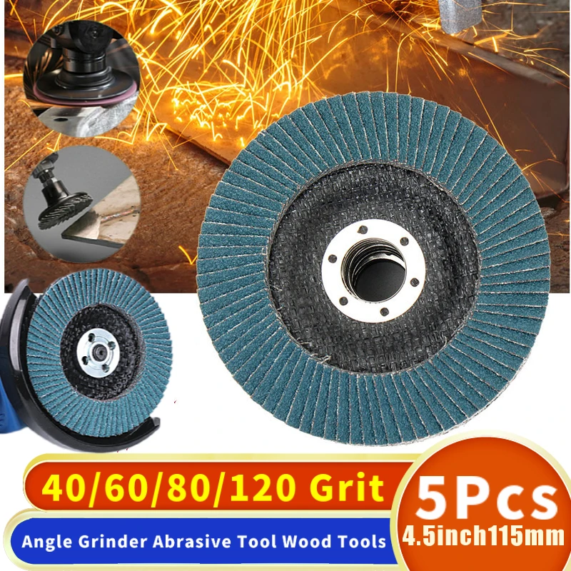 5 шт., угловые шлифовальные диски 115 мм, 4,5 дюйма, Зернистость 406080120