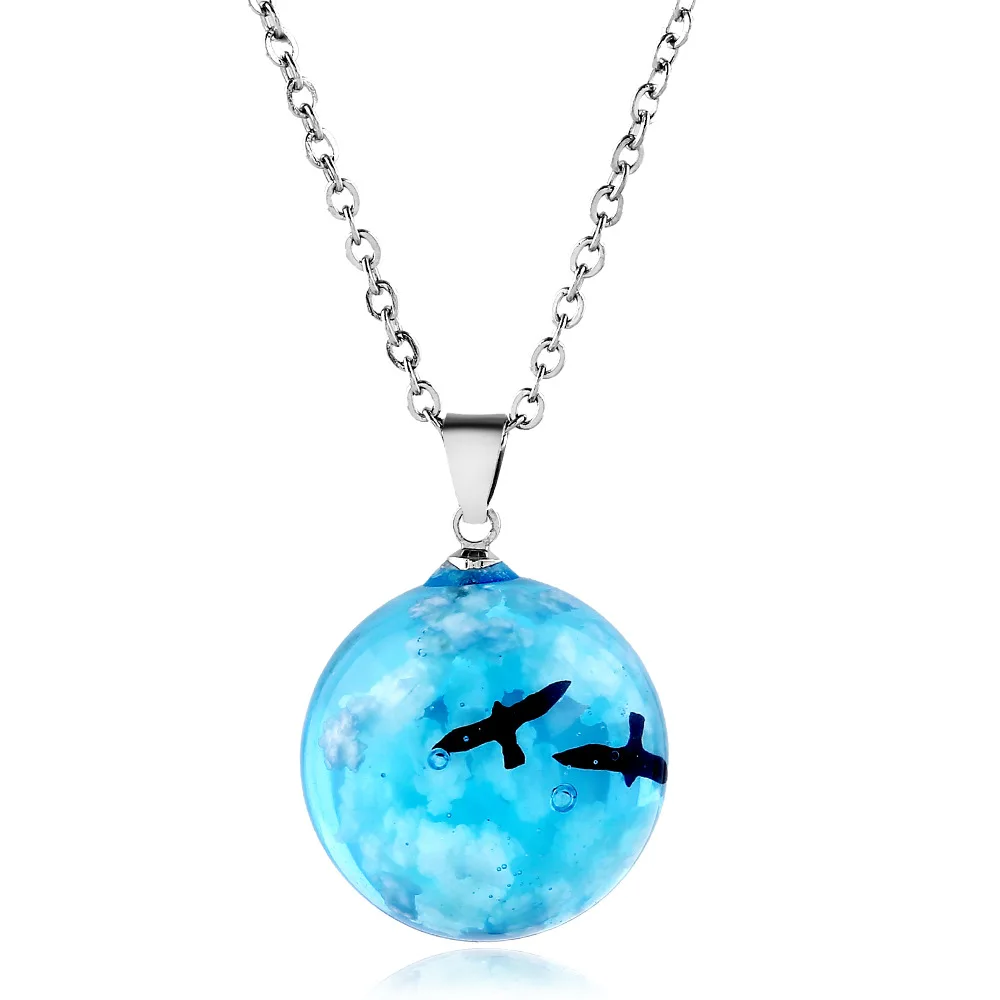 Ожерелье с подвеской в виде облака из прозрачной смолы ожерелье с подвеской облако голубое небо птицы цепочка ожерелье для женщин светится в темноте модные украшения