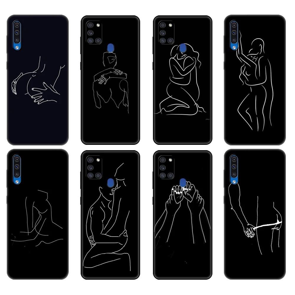 Черный чехол из ТПУ для Samsung Galaxy A50 50S A30S A10 A01 A11 A21S A31 A41 A51 A71 M21 M30S S10 LITE, Минималистичная линия, сексуальная пара